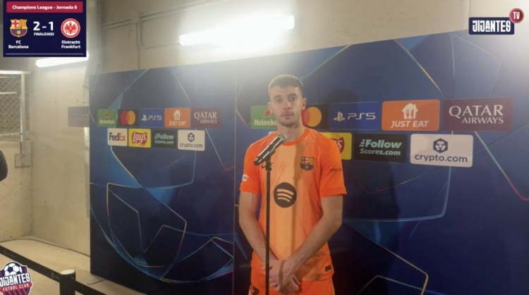 直播吧12月10日讯欧冠联赛阶段第6轮比赛,巴萨主场2-1击败法兰克福,巴萨门将霍安·加西亚赛后接受了媒体的采访。