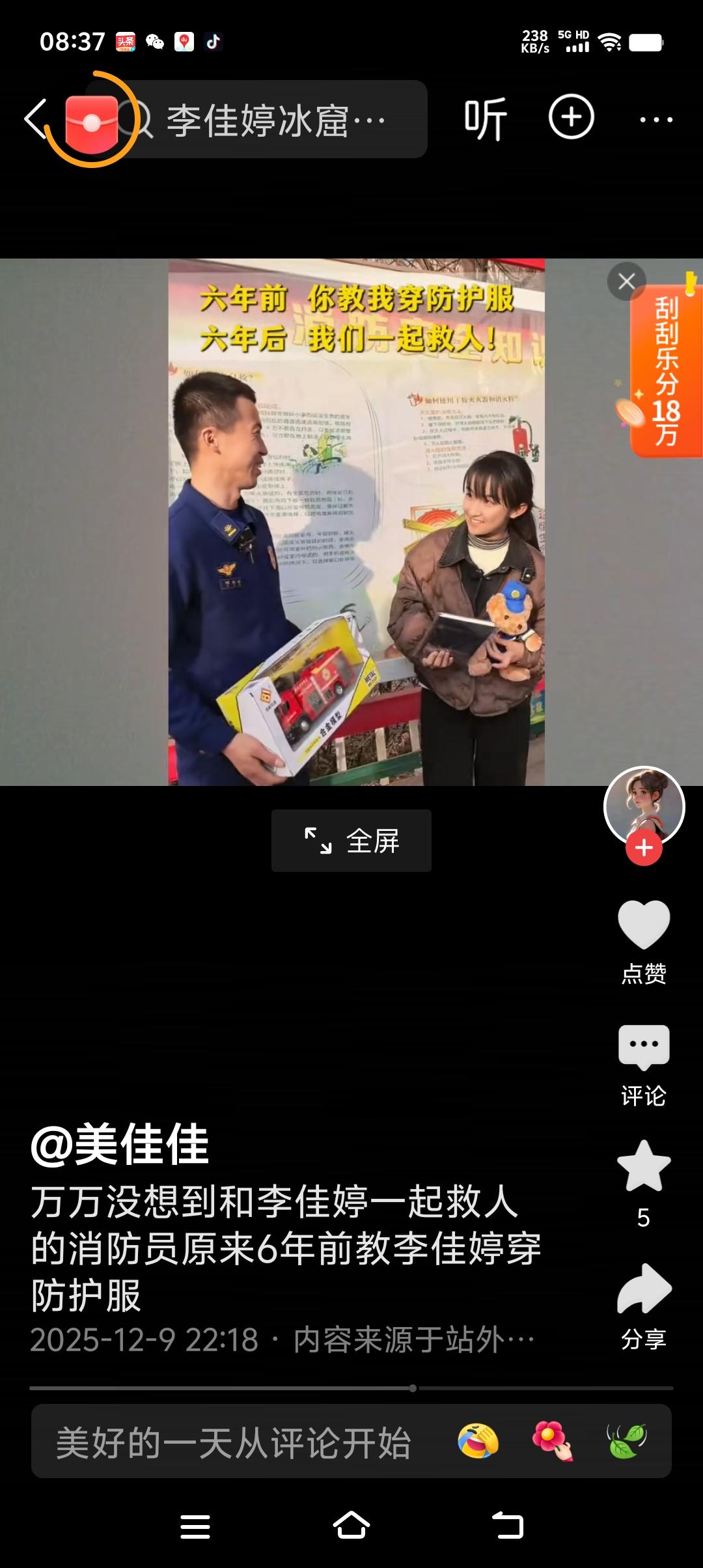 真就是这样巧合吗?长大后我就成了你? 宁夏见义勇为小英雄李佳婷趴在冰面慢慢爬行勇救落入冰水小男孩的事迹大家争相传颂,小姑娘俊美的面容刻在我心里,真是爱到了心坎上! 李佳婷救人的事人们还挂在嘴上夸个没完,下面的一幕更让人惊叹不已,这是竟然这样巧合? 在李佳婷正在全力递给把塑料管子往男孩那里递过去的时候,危险发生了李佳婷身下的冰破碎了,她半个身子落入刺骨的冰水里,就在这紧要关头消防救援人员到达现场,李佳婷和消防员一起把男孩救出! 后来与他一起救小男孩的消防员惊奇地发现,李佳婷正是6年前去消防队参加消防知识学习活动的小姑娘,也正是这位消防员叔叔在六年前给小李佳婷穿上的消防员服装,那时候的李佳婷对消防员叔叔就敬佩不已,觉得他们好伟大!时过六年,李佳婷长大了真的也成了一位编外救援人员,与消防员叔叔并肩作战,看到此消息,我的心底里不由得想起《长大后,我就成了你》! 今天李佳婷活脱脱的一位小英雄出现在用众人人面前时候,这种真善美的高品质来源于骨子里基因传承更来自于六年前根植优秀传统文化教育的那次教育活动! 六年前你给我穿上消防服,今天我与你并肩作战为了那份血管流淌的中华美德!不只口头的誓言:“我们是共产主义接班人,继承革命优良传统——不怕困难,不怕敌人……”而是柔柔弱弱的身躯里绽放出无限的正能——雪中送炭的无私无畏! 医院为她提供的终生免费体检,个体老板五万的购房资助,申报见义勇为好少年,这些奖励非他莫属,趴在冰面掉下冰水里,接下来会发生什么不敢想象,千金、万金能买到女孩金子般临危不惧善良的心吗?
