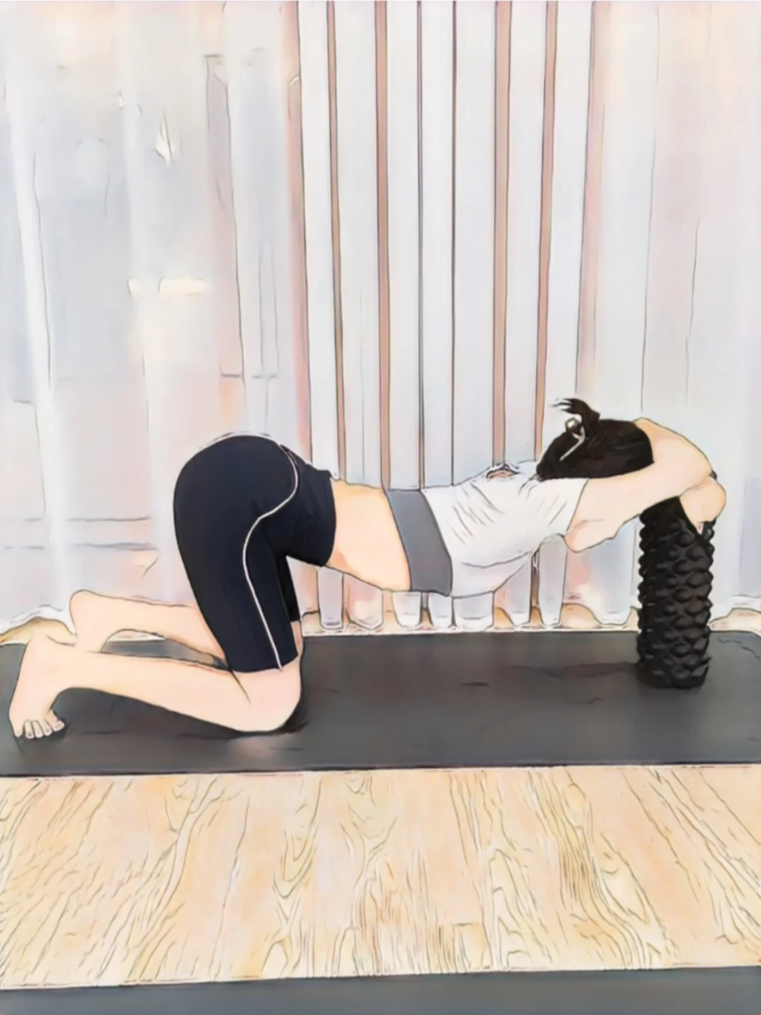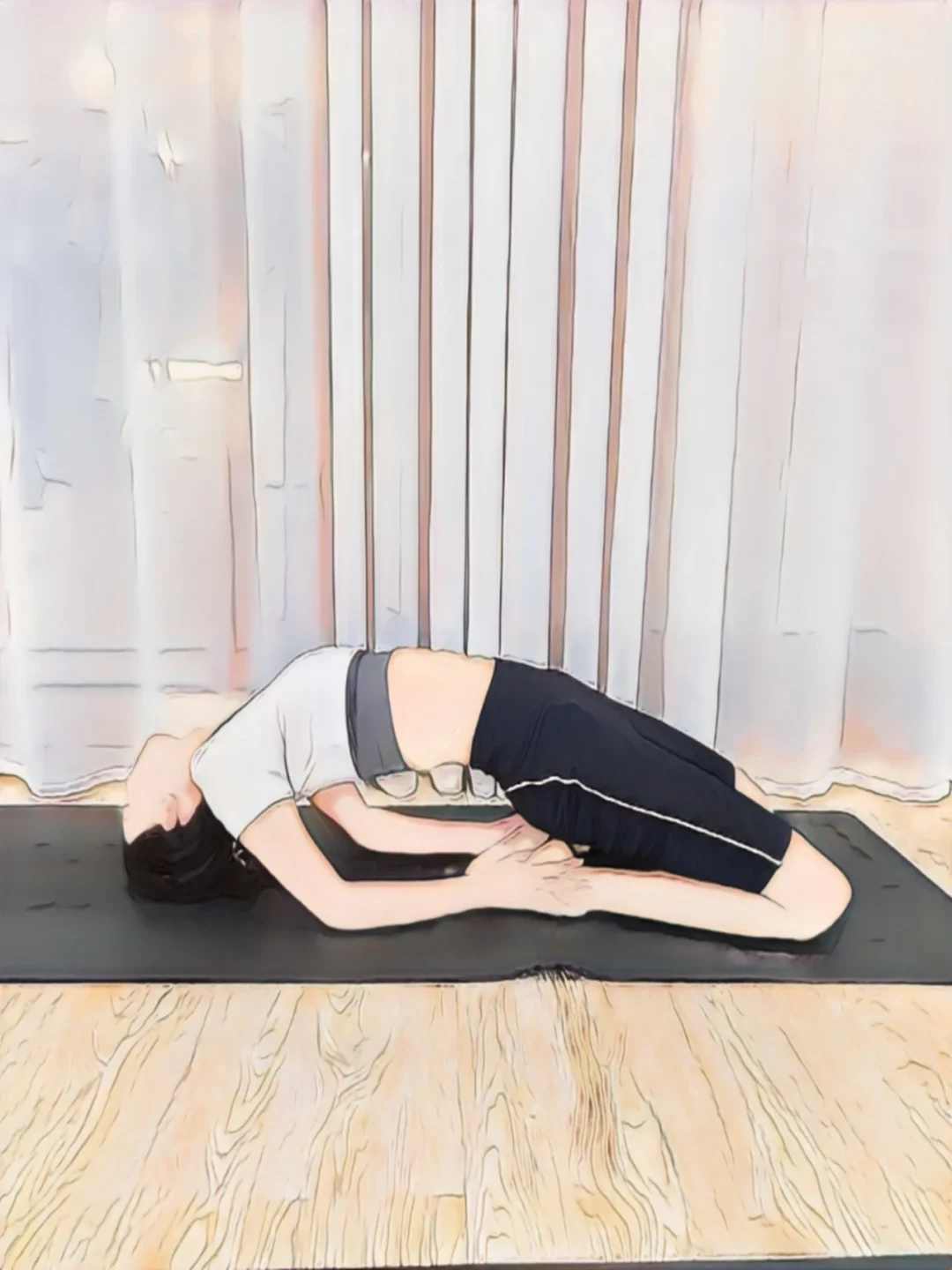 √动作一:背部拉伸(30s2组,做之前记得先拉 伸,很考验腰) √动作二:肩颈拉伸(40s2组,能多坚持就多坚 持会) √动作三:胸部拉伸(30s2组,摸到jio,腰尽量 抬高)