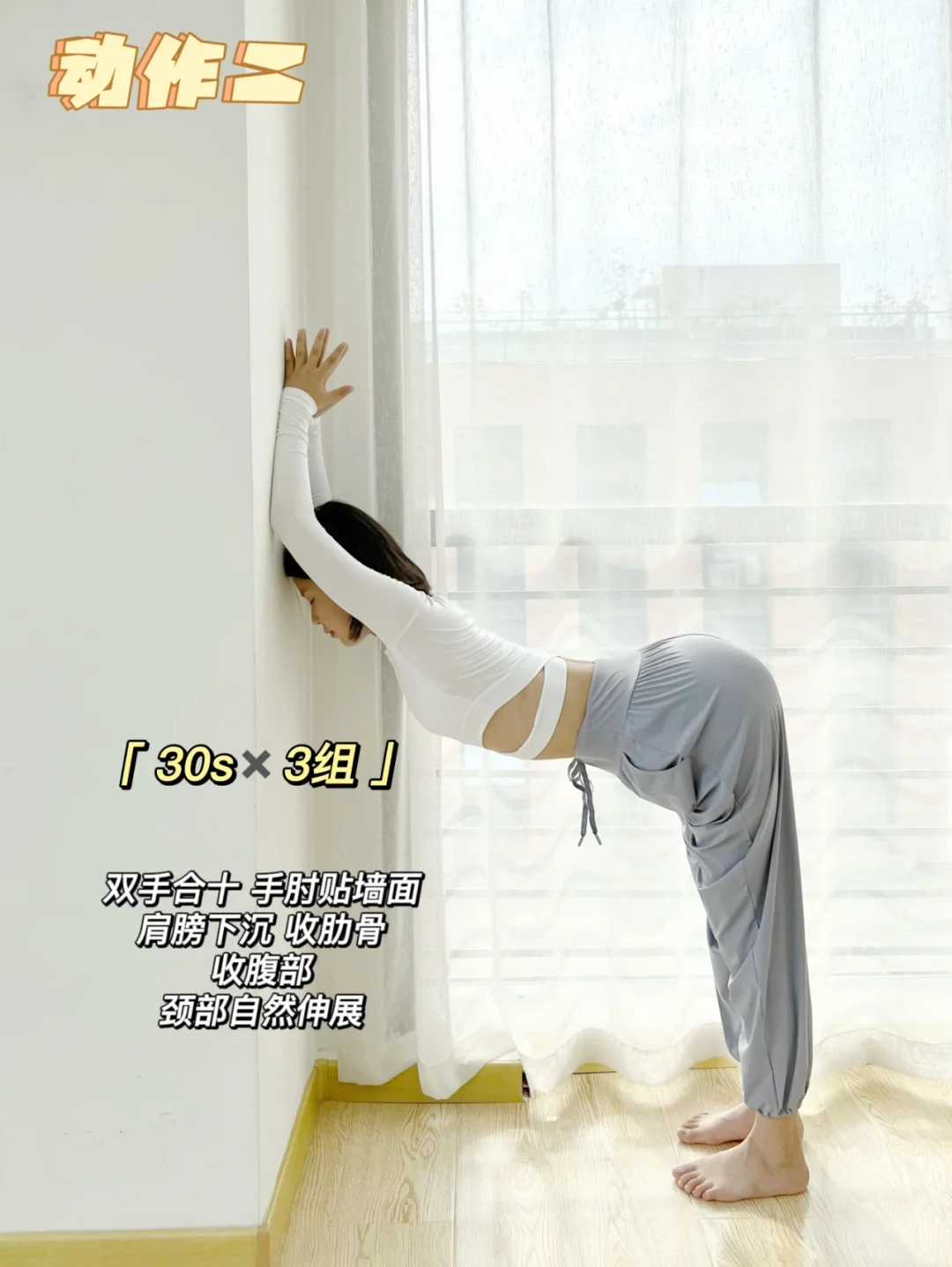 有墙就能做的5个瑜伽开肩动作 圆肩驼背体态差真的是很影响气质! 练了半个月感觉整个肩膀都打开了 不仅背薄了走路也不驼背了