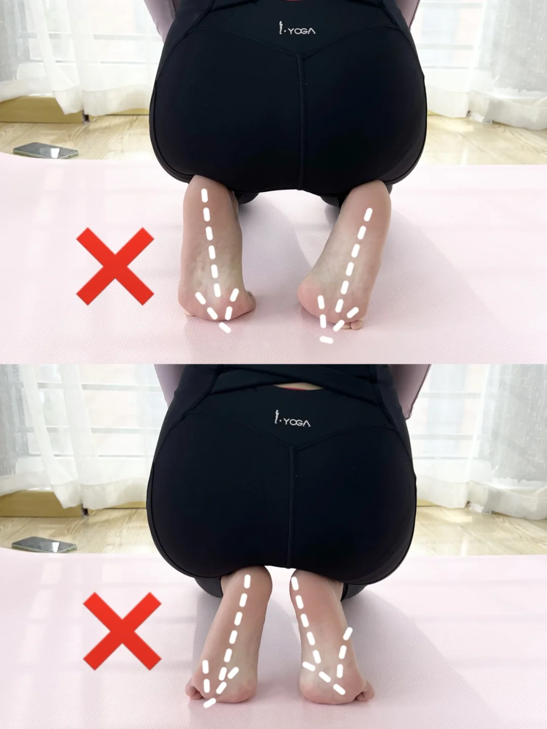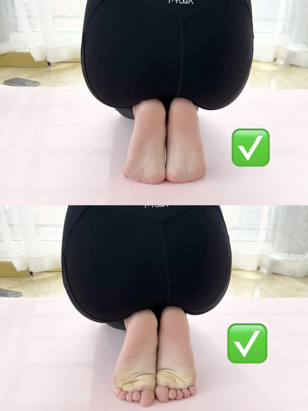 压脚背可以说是改善腿型方法中最简单方便的方式之一! 原理主要是因为压脚背可以增加足弓力量,足弓有力才能让我们用正确的走路姿势走路,只有走路姿势正确才不会让腿型变形 1️⃣平脚跪坐压脚踝 保持30-60s/组*3组 2️⃣弯脚跪坐压脚趾前侧 保持30s/组*3组 3️⃣勾脚跪坐压脚趾后侧 保持60/组*3组 基础版和进阶版姐妹们可以根据自己的承受力自由选择,还是那句话记得循序渐进! 建议在稍微软一点的瑜伽垫上练习,可以保护膝盖,做好之后记得放松一下jiojio~