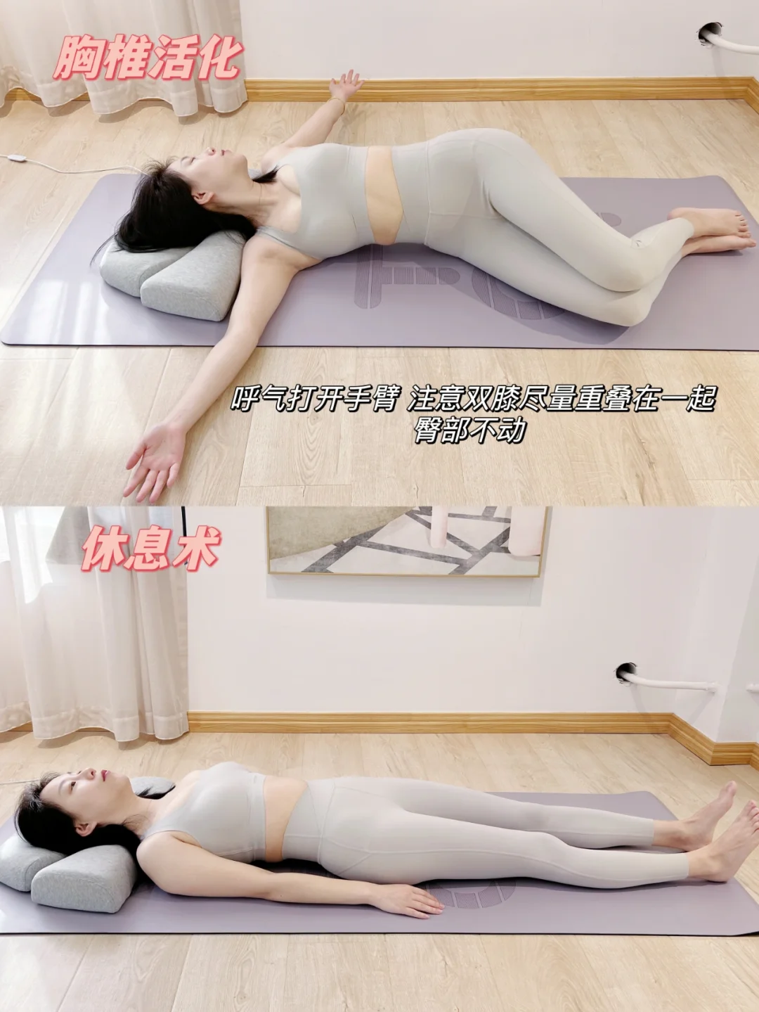 现在的年轻人,由于长期伏案工作、低头玩手机导致脖子前倾、驼背有富贵包等不良体态,甚至出现颈椎曲度变直、颈椎僵硬酸痛等毛病 除了及时就医外,这几个动作瑜伽动作一定要试试!!只需10min,让你的体态嘎嘎提升! 需要准备一个颈椎分区枕,或是用毛巾卷成一个圆柱形 我用的是颈椎枕,支撑好有一定高度,能满足颈椎睡觉的生理曲度,还可以加热,睡起来颈椎就可以深度放松,也能用来当运动辅助工具。 可以在睡前或是颈椎疼痛时练习,坚持才能改善颈椎相关问题,祝大家都有一个好颈椎!
