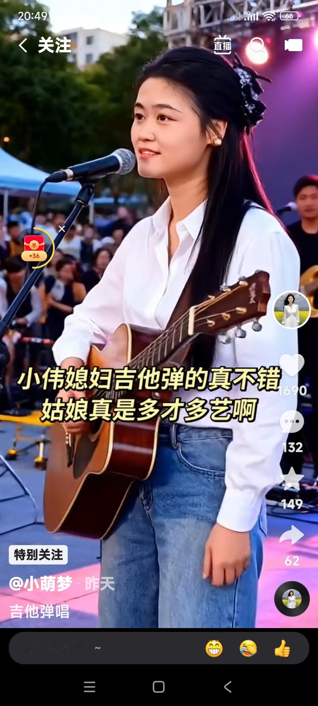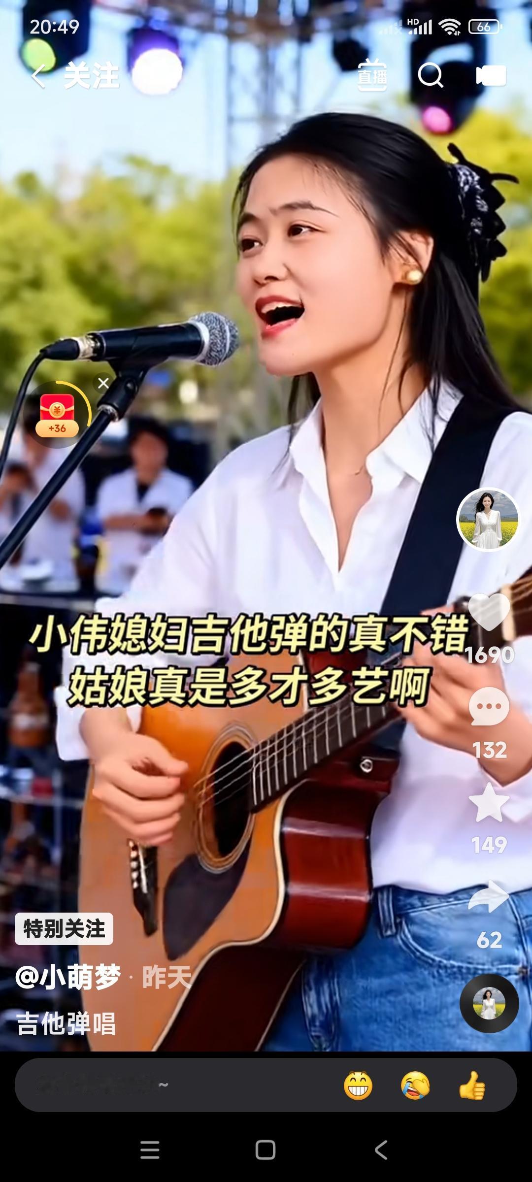 陈萌,弹着吉他唱着歌儿。 真是有文艺细胞儿,文武双全的好媳妇儿。 多才多艺的