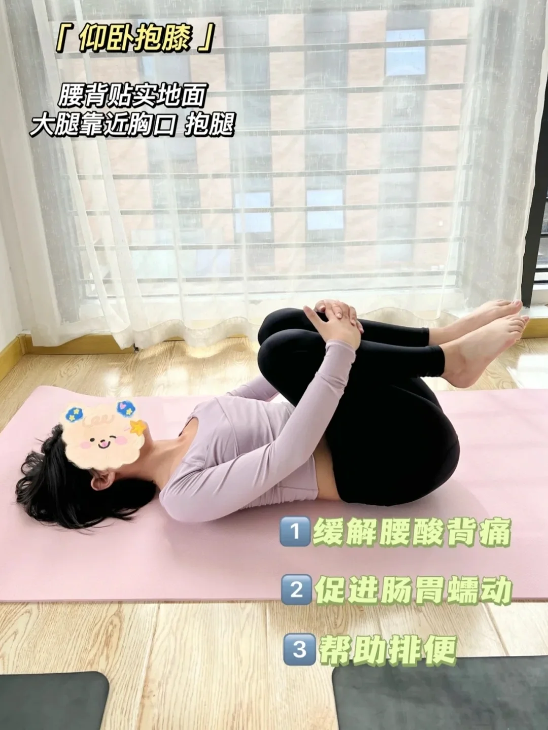 这两个动作对女生身体很好哦~ ⭐卧束角式:睡前做10分钟 可以促进血液循环,缓解疲惫感,睡前玩手机的时候边玩边做,还可以有一个优质的睡眠 ⭐仰卧抱膝:早上睡醒做10分钟 可以促进肠胃蠕动,帮助排出宿便 便秘也可以手揉肚脐眼顺时针100次,亲测很有用!