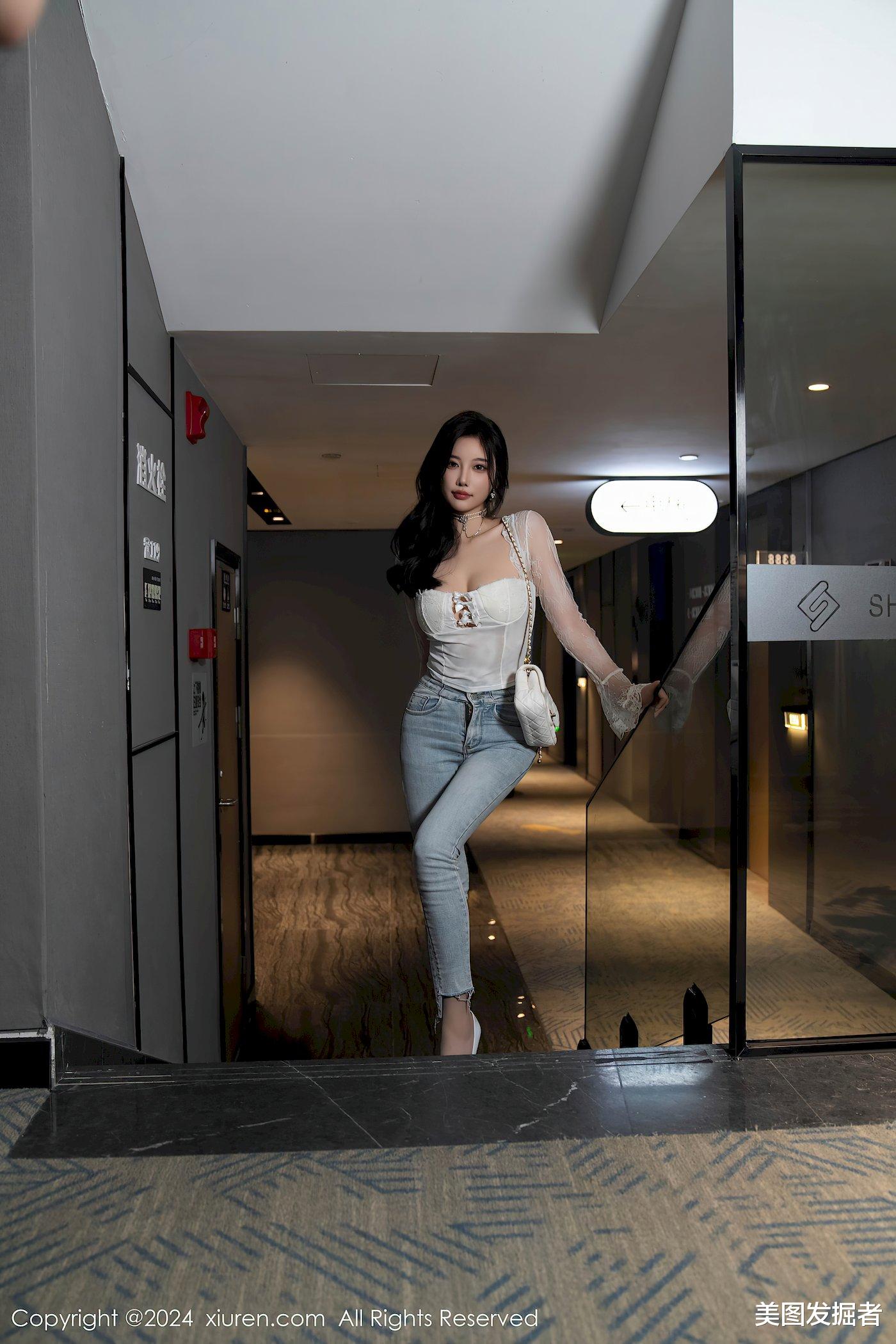 杨晨晨Yome白色上衣搭配简约牛仔裤性感写真