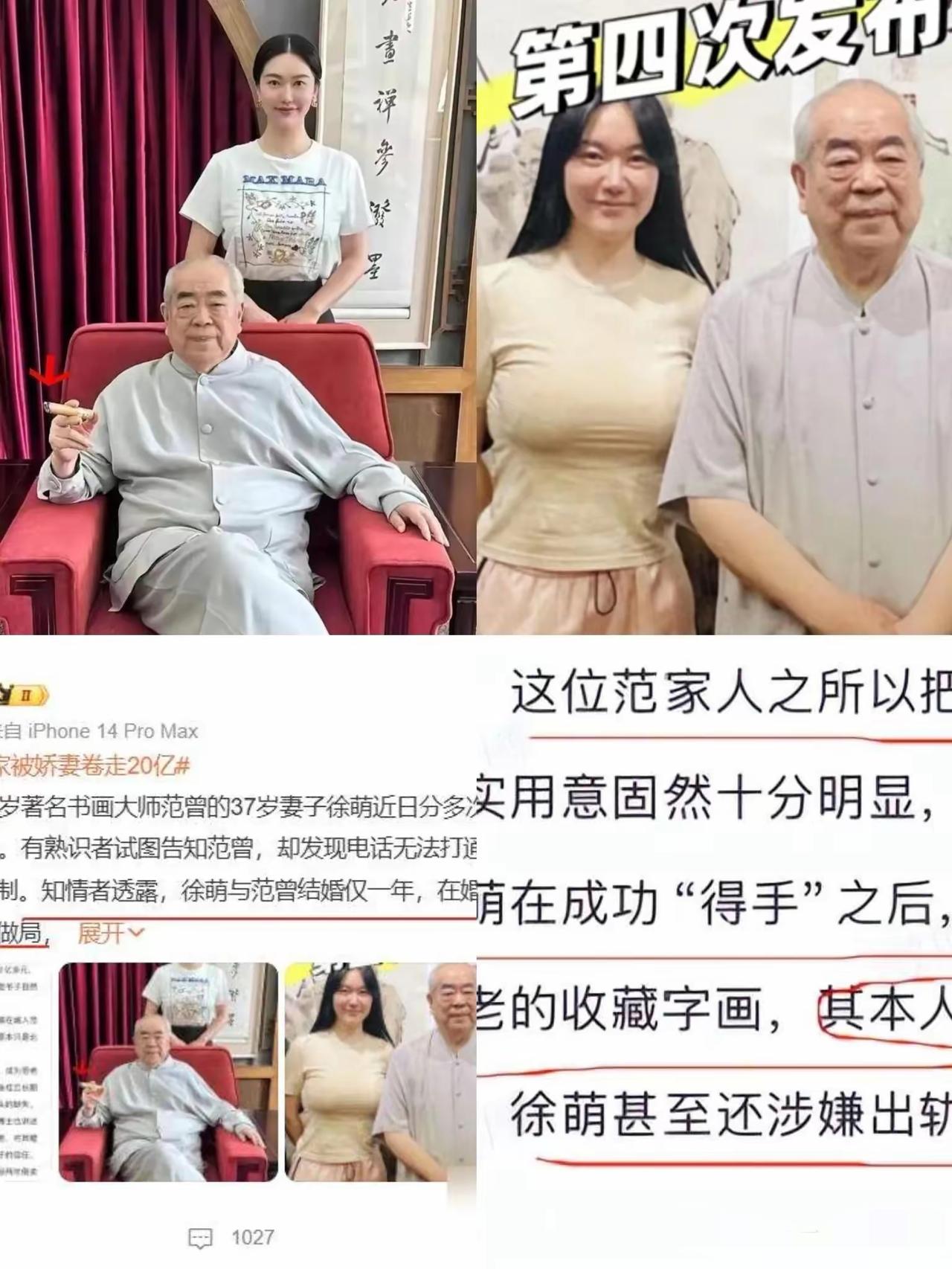 范增,你要是被绑架了就眨眨眼[狗头]。80+老画家范增“喜得贵子”,还发声明跟闺女断绝关系。 还记得之前还刷到过新闻说他新妻伙同他人卷走他几十亿家产……,几个月过去,失联归来的他,说法就变成了“喜得贵子,内政外交由爱妻徐萌全面掌握”[狗头]…… 这事好抓马哦…… 等着看下一回的故事……