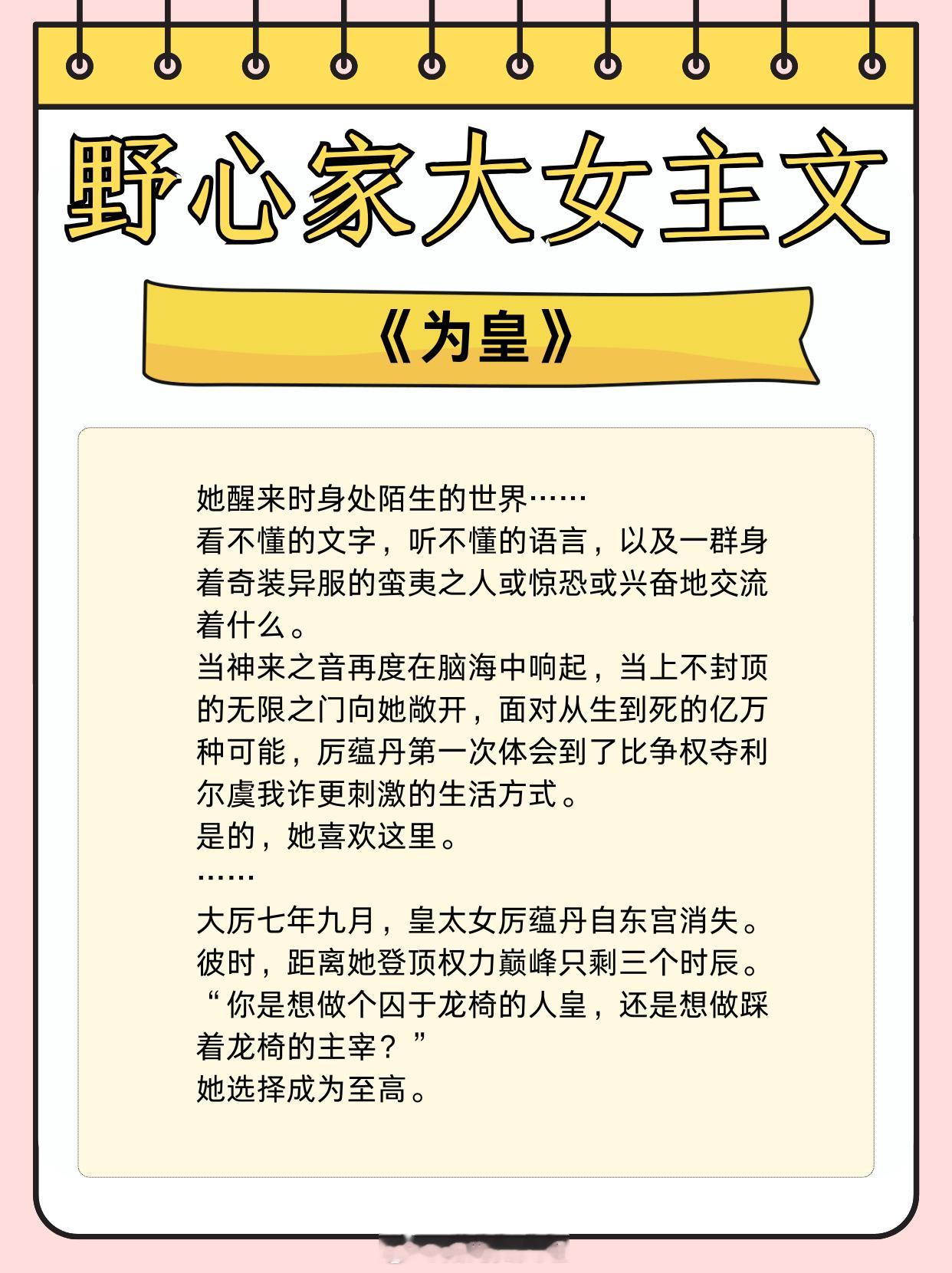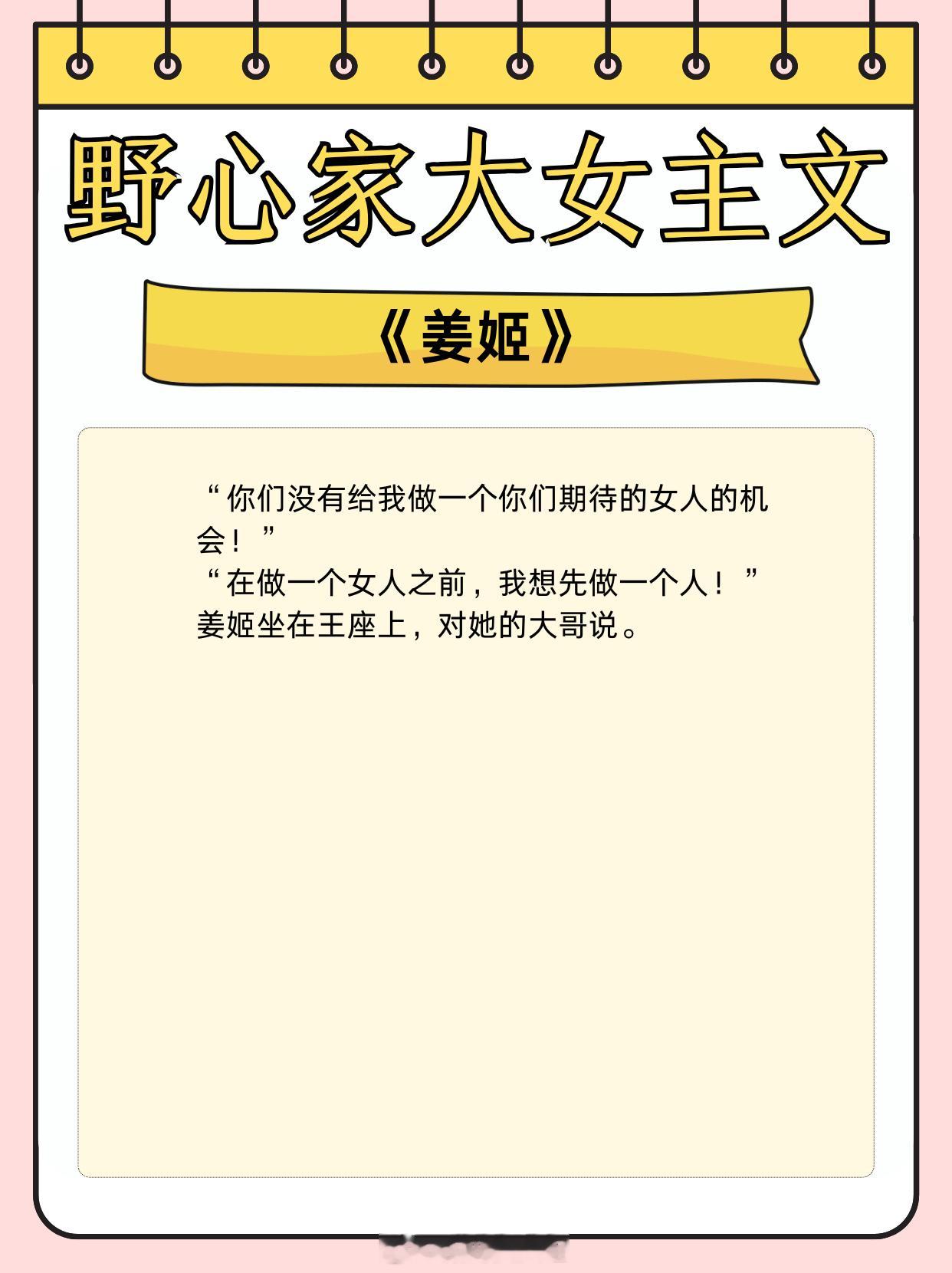 封神的野心家大女主文,她是那个时代的野心家1、《祝姑娘今天掉坑了没》作者:我想吃肉2、《野心家》作者:石头与水3、《反派大师姐》作者:碳水化合物4、《黑月光她只想夺权》作者:元余5、《为皇》作者:老肝妈6、《姜姬》作者:多木木多7、《穿进赛博游戏后干掉BOSS成功上位》作者:桉柏8、《修仙不如玩基建》作者:退戈9、《惹金枝》作者:空留好看的小说推荐 网文界的诸神之战