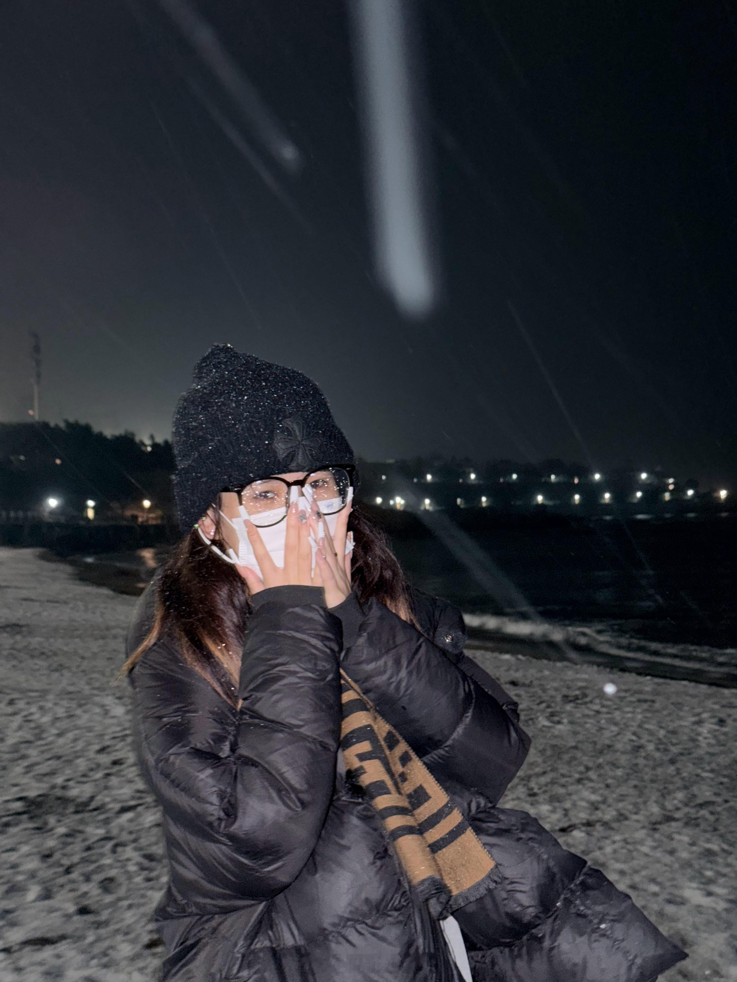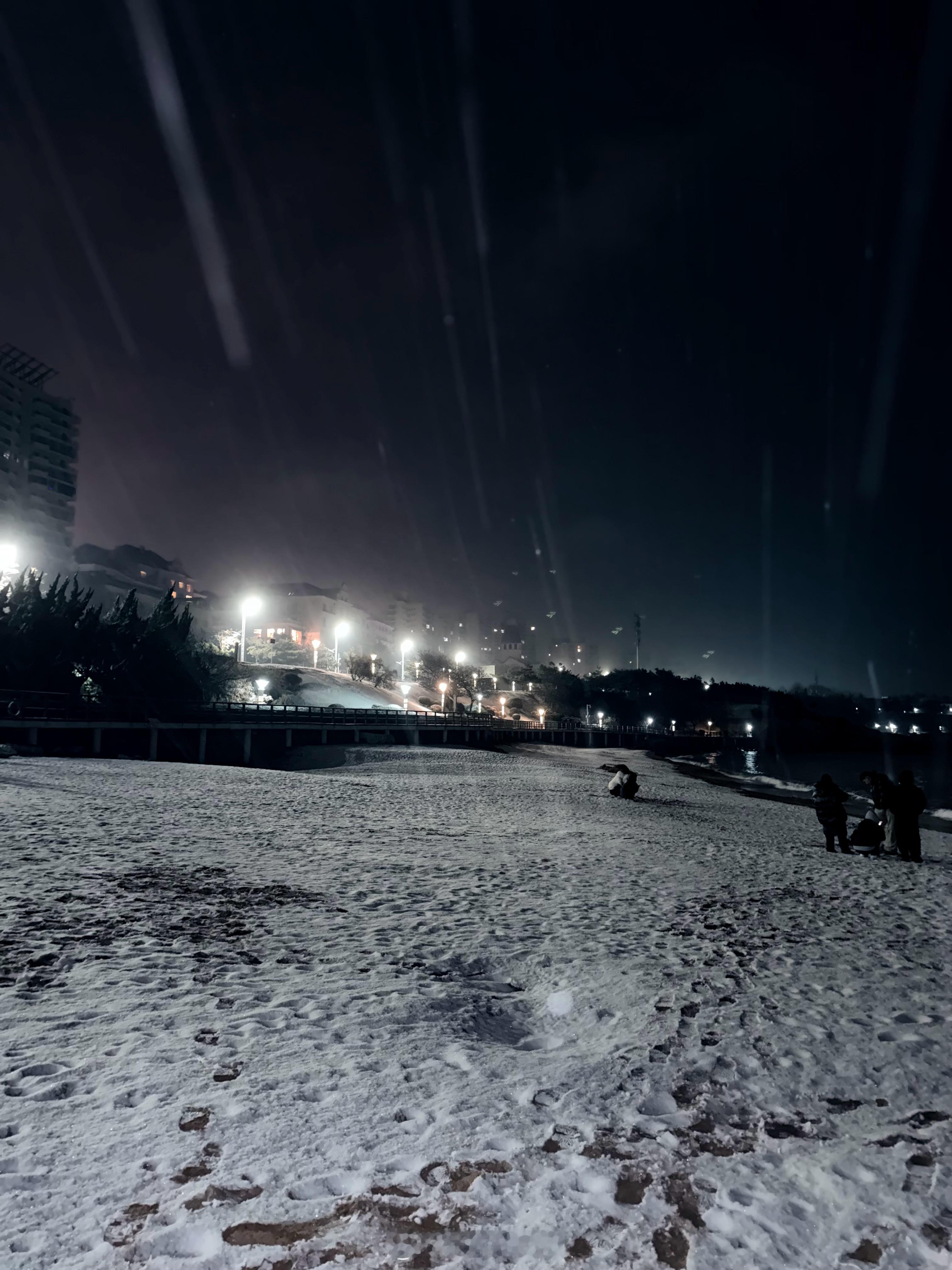 半夜才发现竟然下!雪!了!思考了一分钟就下楼跑到海边看雪虽然是小雪但是是青岛今年冬天的初雪开心🥳