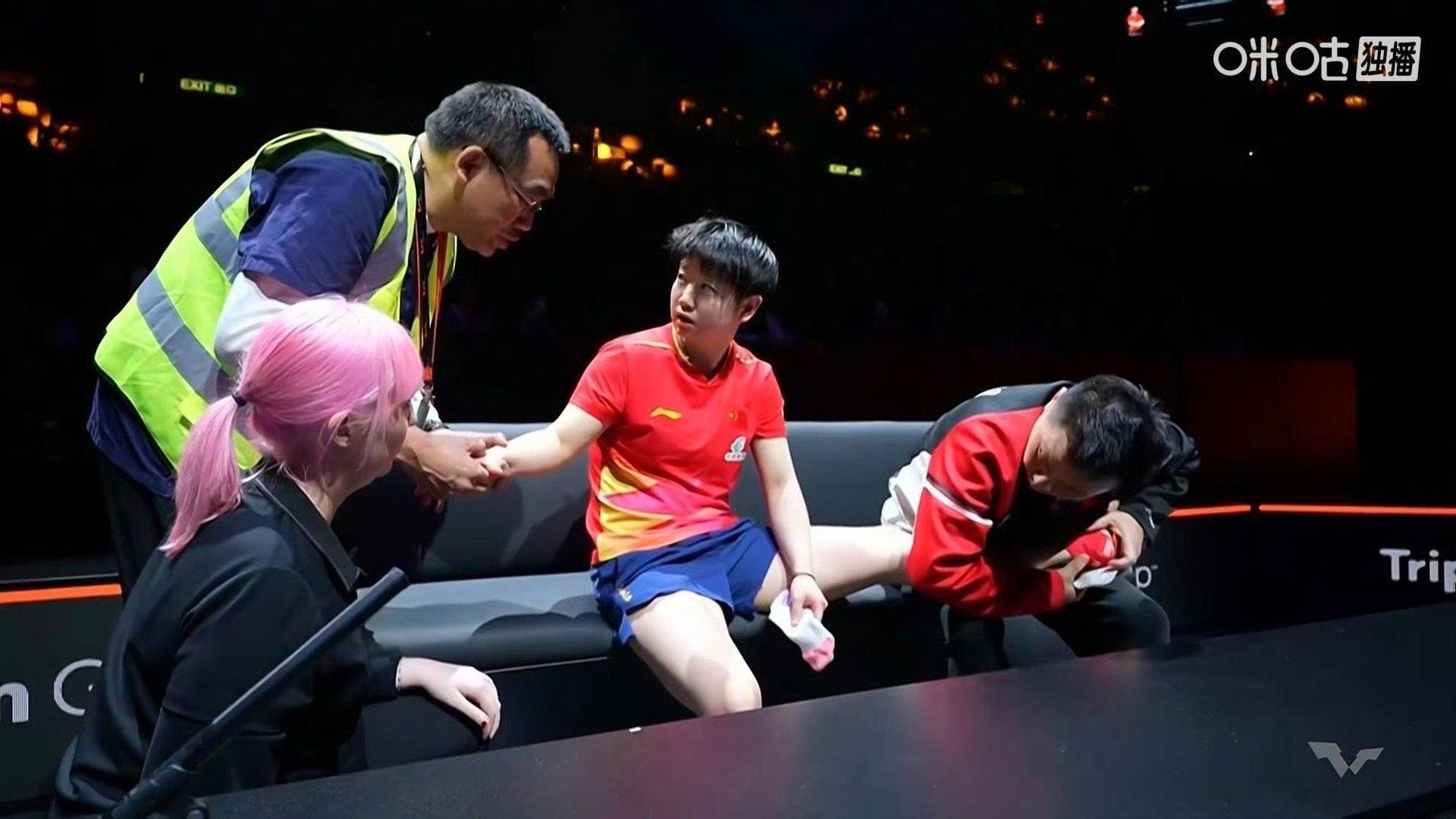 孙颖莎医疗暂停 孙颖莎是本站总决赛女世排前三里唯一兼项的运动员,也是所有参赛运动员里唯一一日三赛的运动员,下午混双半决赛15:00结束,晚上女单半决赛19:40,混双决赛21:00,女单半决赛和混双决赛仅仅间隔一场比赛,七小时三赛硬生生被消耗到用了医疗暂停最终伤退,这密集的赛事和魔鬼赛程安排代表赛方和CTTA完全没有考虑到运动员的身体。孙颖莎整个2025赛季,在唯一有效兼项且连轴转密集赛程下,依然实现了【唯一外战100%胜率】,就这样顶级优秀又有责任心的运动员,现在连公平合理安排赛程健康完赛也成了奢侈,竞技体育怎么会这样?孙颖莎受伤退赛
