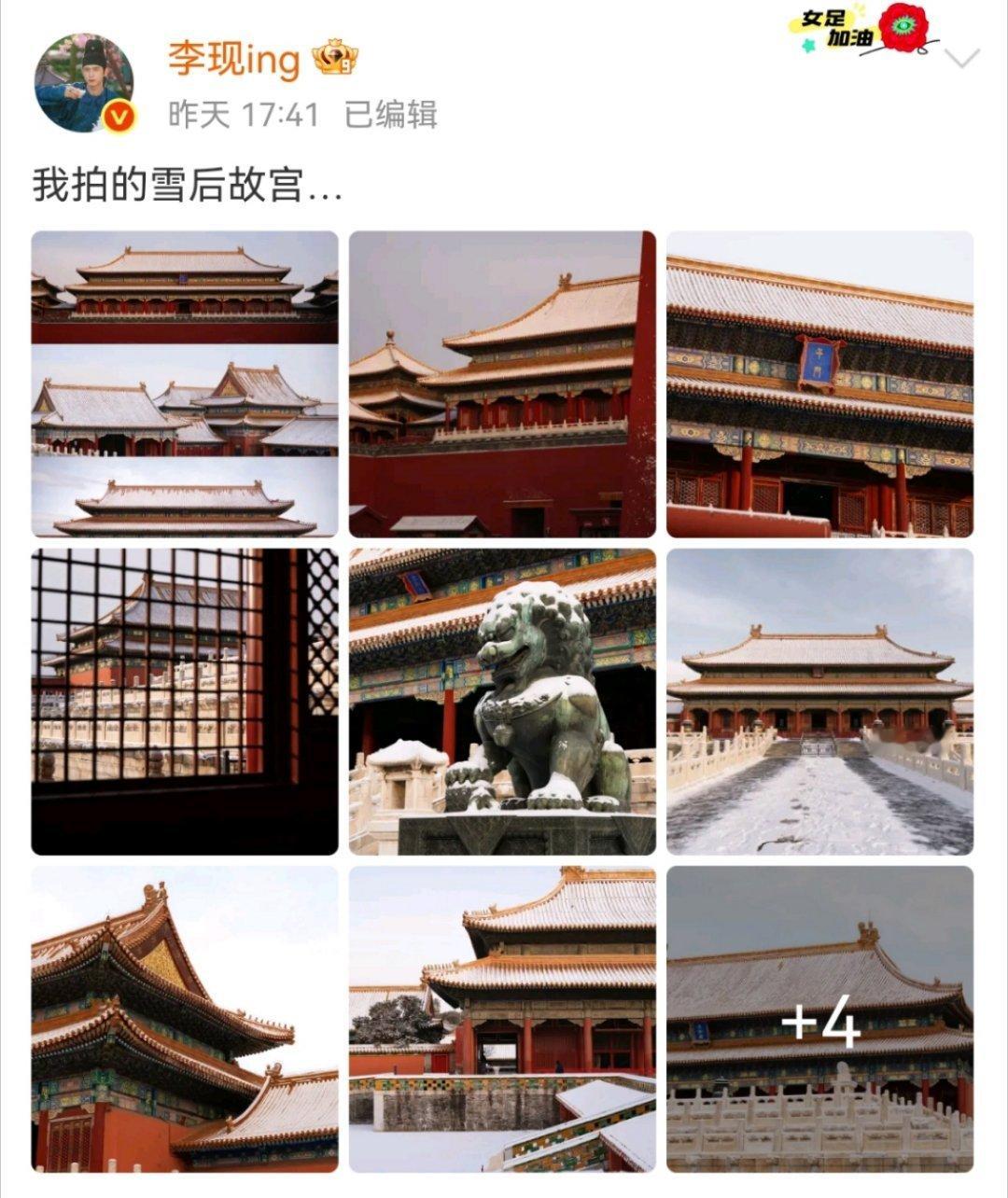 李现拍的雪后故宫,红与白的碰撞,古典与镜头的融合,太美了~故宫偶遇李现李现