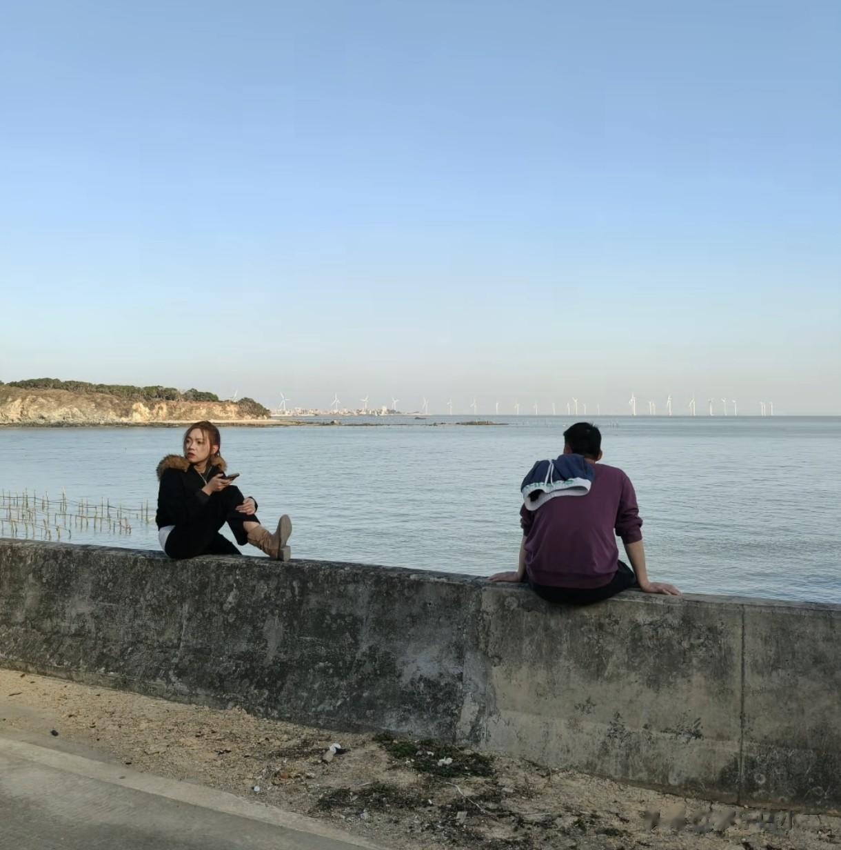 而在这时候,视频中看到了谢浩男和大妹两个人坐在海边水泥围栏上聊天。