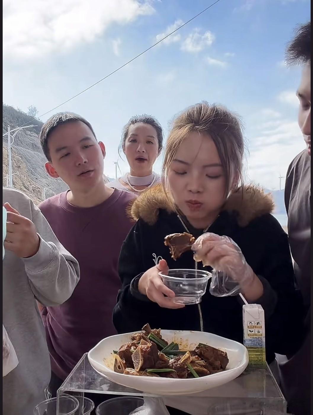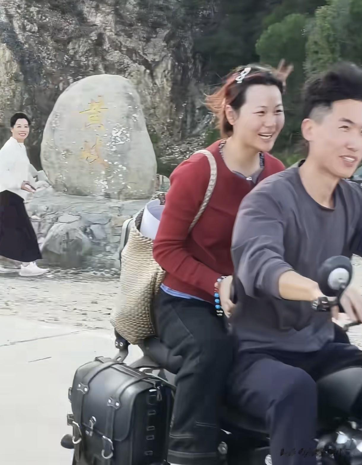 就在她拍摄海军妈妈农场的时候,只见海军骑着那辆非常帅气的黑色摩托车,载着一个红衣服女孩从她面前疾驶而过。