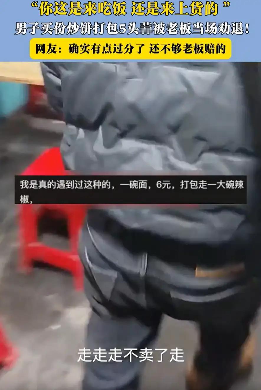 天津,一男子进店要了份打包的炒饼,可等老板做好准备给他时,却发现男子早已打包好五头蒜和不少咸菜,老板看后也是气不打一处来,当场对男子说:你走吧,我不卖给你了! 这天,一位男子推门而入,张口就对老板说要一份打包的炒饼。老板爽快应下,不多时,一份炒饼就弄好了。 可当老板拿着炒饼准备递给男子时,看见男子手里两份打包好的塑料袋,老板凑近一看,顿时愣住了,塑料袋里装着五头大蒜,旁边的咸菜也装了满满大半袋,看这分量,足够配好几份炒饼,店里免费提供蒜和咸菜,就是为了让食客吃得舒心,可从没见过这样打包的。 老板强压着怒火,对着男子摆摆手:“你走吧,这炒饼我不卖给你了。”男子闻言愣了一下,似乎没料到老板会这么说,他放下手中的塑料袋,没多说一句话,转身就离开了。 毕竟,免费的配料是给食客搭配餐食的,不是让人大包小包带走的。一份炒饼不值多少钱,但这份占便宜的心思,实在是丢了做人的分寸。