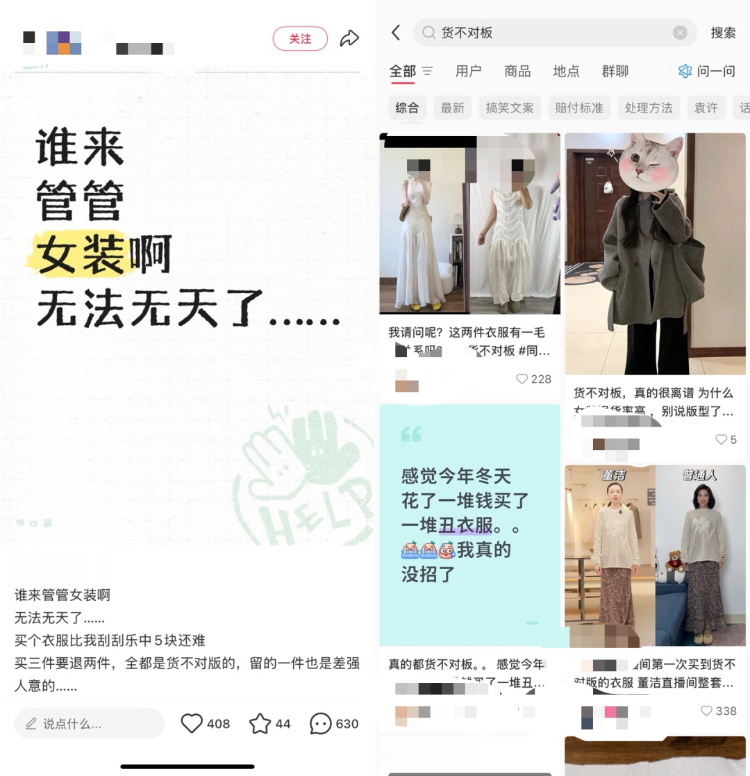 高退货率只是一种结果——很多衣服货不对款、需要凹造型才好看或是关键原因。前述受访店主表示,现在同价位商品的质量大如从前,低品质、高退货、卖家进一步压低成本控制风险,这是一个恶性循环。