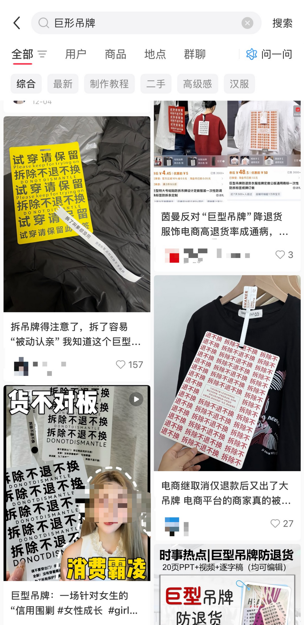好在这种环境正在改善。前述受访专家表示,平台们其实已经在着力改善女装电商的经营环境了,市面上也流行起“巨型吊牌”等仿退货措施。比如今年,多个平台已全面取消“仅退款”政策。据36氪报道,淘宝天猫今年密集开启了一系列小范围商家会和1v1商家沟通,从新品激励、站外流量扩充、会员私域、佣金激励等方面扶持优质品牌及商家。
