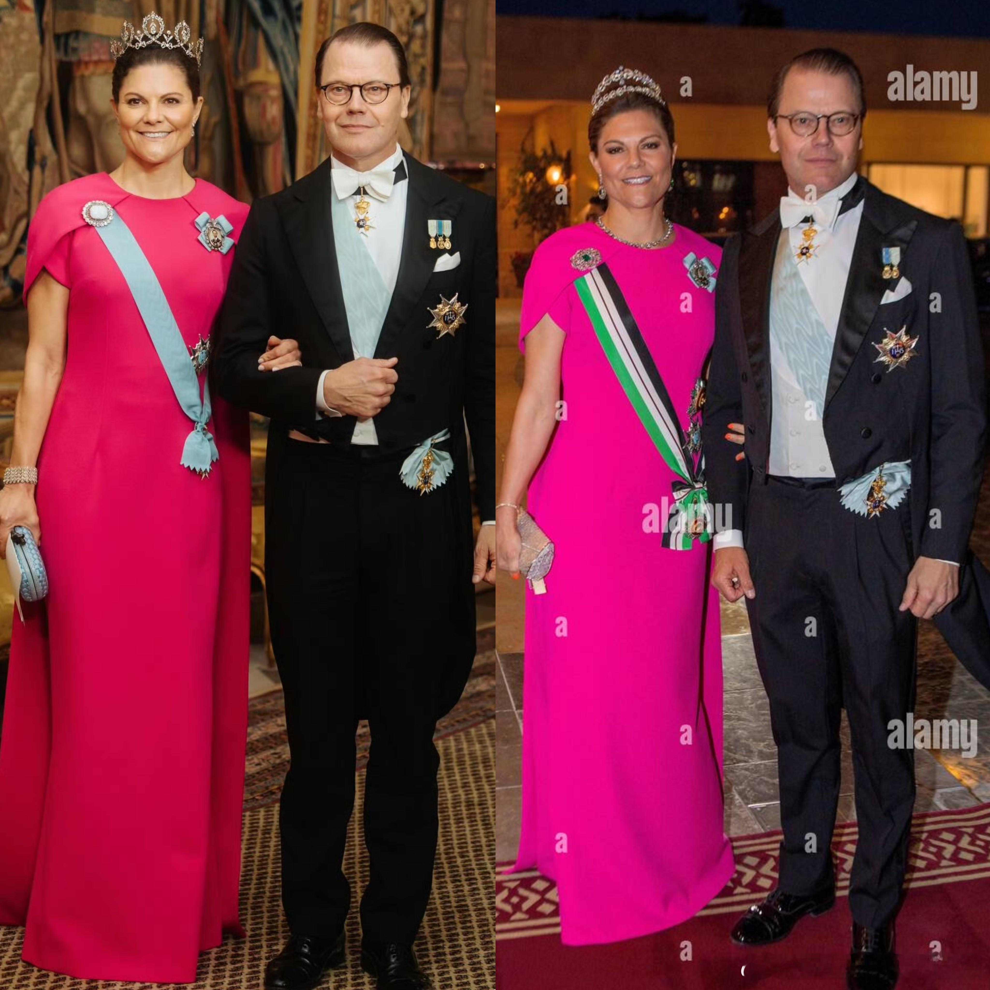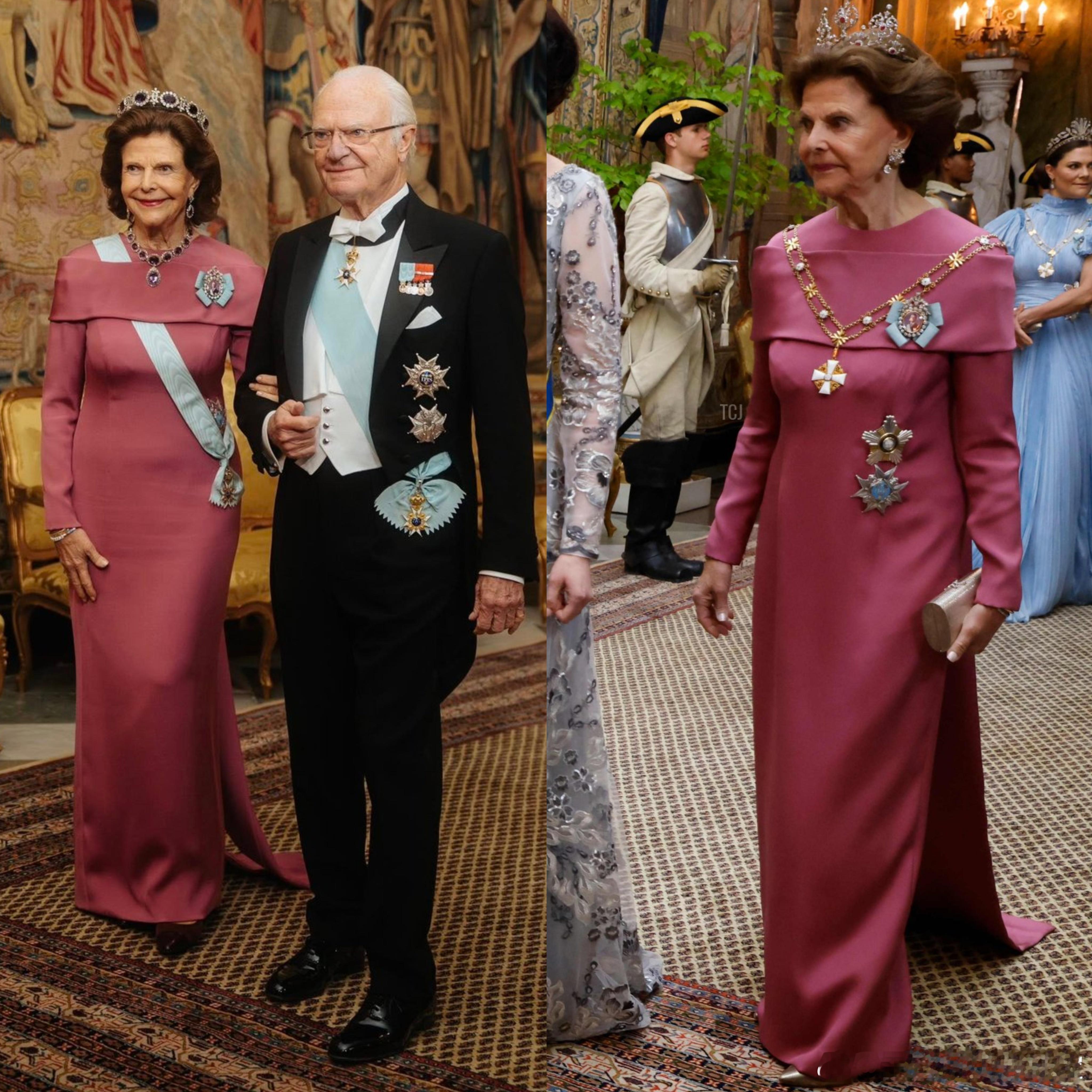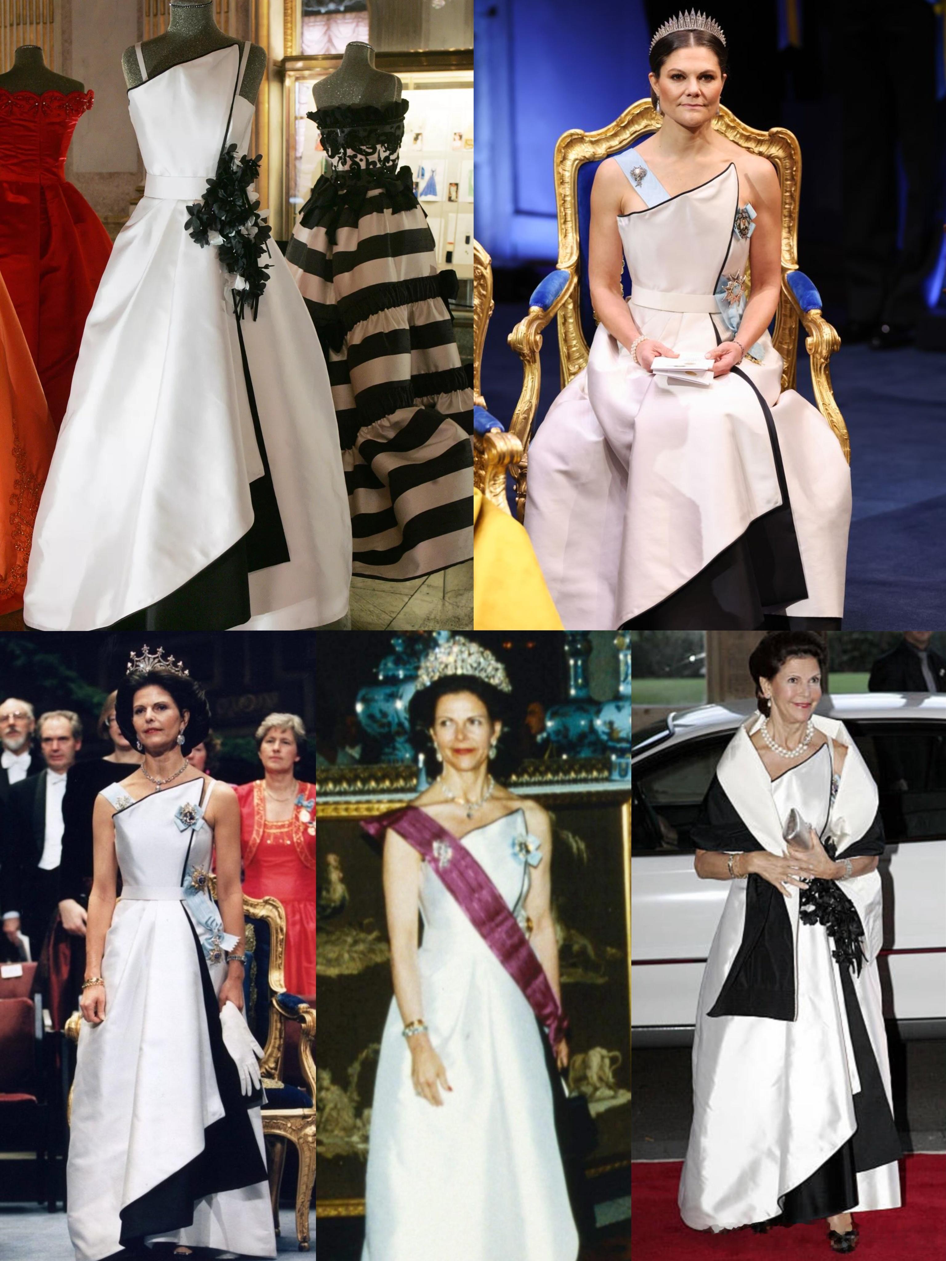 你究竟有多爱这件衣服 回顾今年诺贝尔奖颁奖典礼&芬兰国事访问荷兰晚宴上的旧礼服循环重穿。图1&图2:瑞典王后西尔维娅重穿德国品牌Georg et Arend定制的金色刺绣缀饰长礼服和淡玫瑰色一字肩长礼服,之前分别在2023年瑞典国王卡尔十六世·古斯塔夫即位50周年晚宴和2022年芬兰国事访问瑞典晚宴上穿过。图3:瑞典女王储维多利亚翻出了母亲西尔维娅曾在1994年诺贝尔奖颁奖典礼穿过的Jacques Zehnder黑白长礼服,大维把肩带和腰间的黑色大花去掉使其变成较为简约的抹胸礼服(对于她本人来说穿得不错了,虽然还是没有亲妈穿的好)。图4:瑞典女王储维多利亚重穿Safiyaa桃粉色披肩长礼服,之前在2023年约旦王储夫妇的婚礼晚宴上穿过。图5:瑞典公主玛德琳重穿Jenny Packham的Osha系列银色亮片斗篷式长礼服,之前在2023年瑞典国王卡尔十六世·古斯塔夫即位50周年晚宴上穿过。图6:荷兰王后玛克西玛重穿Claes Iversen红色露肩泡泡袖礼服,之前在2023年法国国事访问荷兰晚宴上穿过。