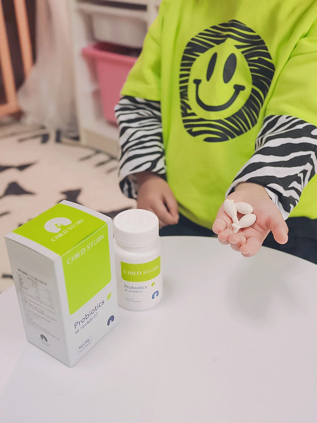我们在小星星半个月的时候就开始让她每天吃一粒童年故事的复合益生菌,他这种是软胶囊的,不容易被氧化。一般是菌株数越多效果就越好。他们这个里面每颗胶囊含M-16V和Bi-07菌株各一半,共100亿株活性益生菌。因为做过功课,知道益生菌不止能缓解肠胀气,其实还可以缓解新生儿黄疸、预防缓解便 秘、预防婴幼儿湿疹、过敏性皮炎、预防呼吸道感染、缓解过敏症状等,可以平衡肠道菌群