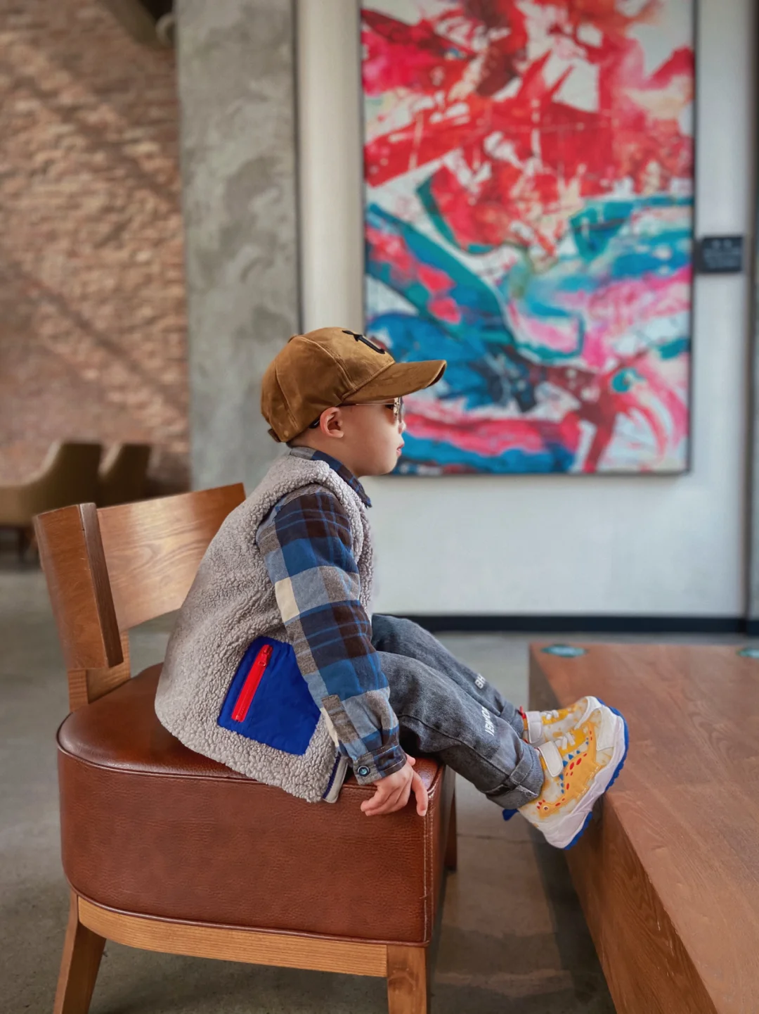 📷为了来这边拍照,给宝贝搭配了一套蓝色格子的衬衣外加小马甲,鞋子是白的运动鞋,上面有卡通小恐龙的图案,这个鞋子是卡特兔家的春款,因为我们家比较好动,所以我冬天都没有给他买雪地靴。这种穿着比较舒适,也很百搭。走路的时候,小恐龙的眼睛还会一闪一闪的,宝贝很喜欢,每次出门都吵着要穿小恐龙❗️
