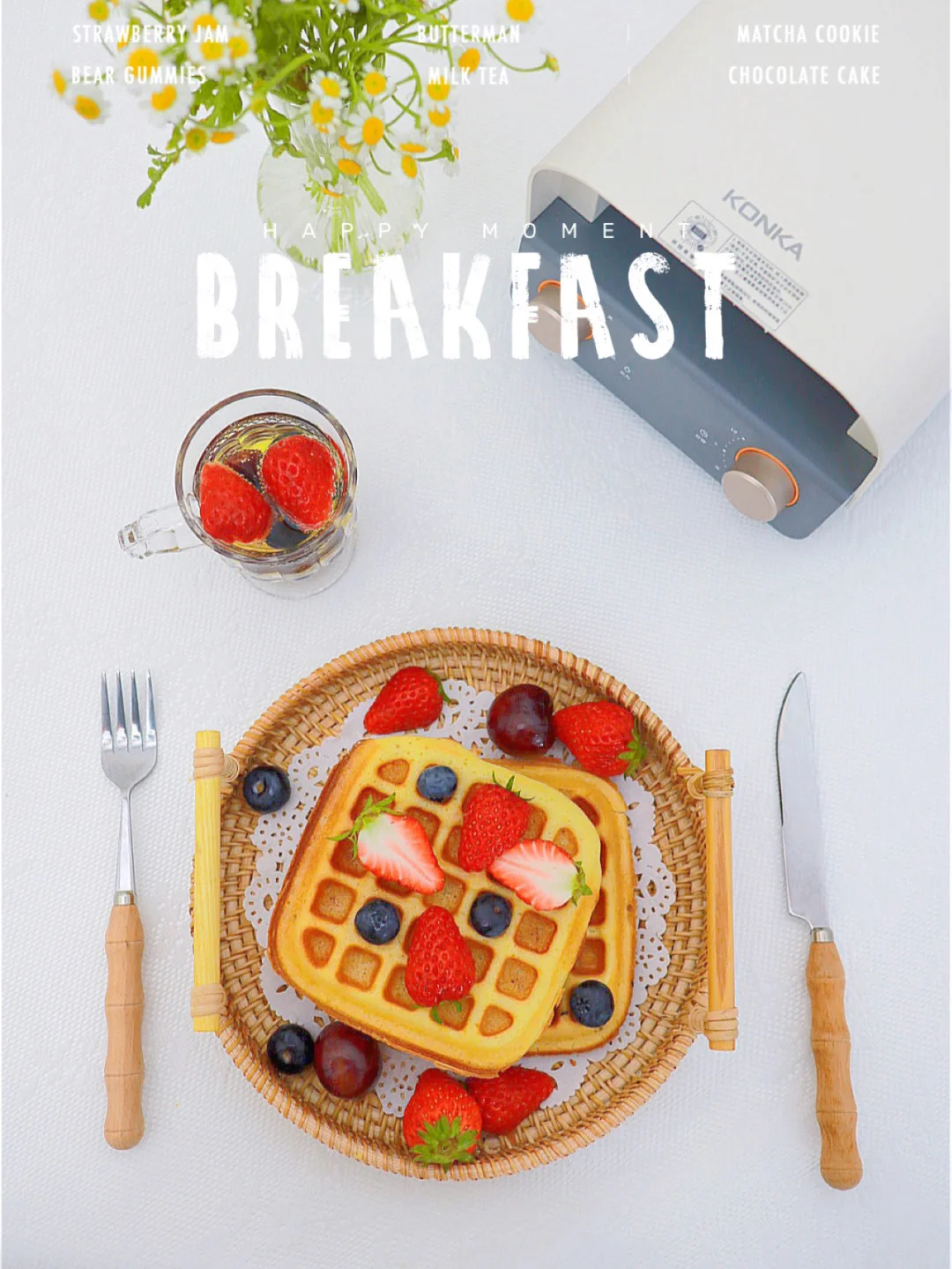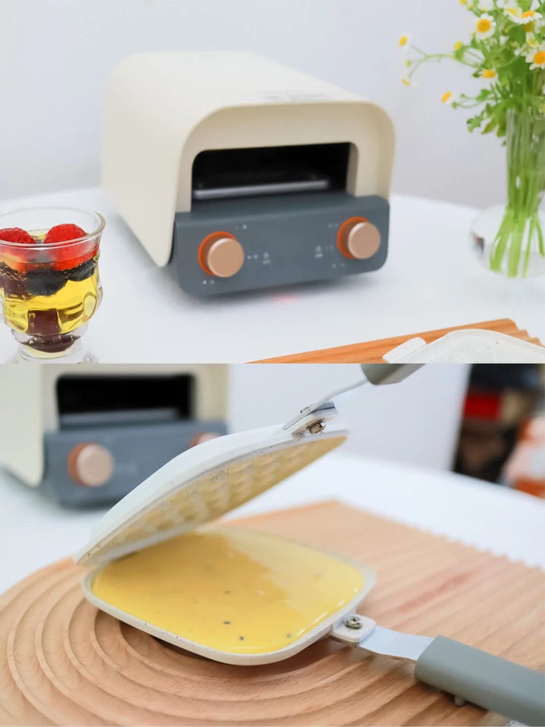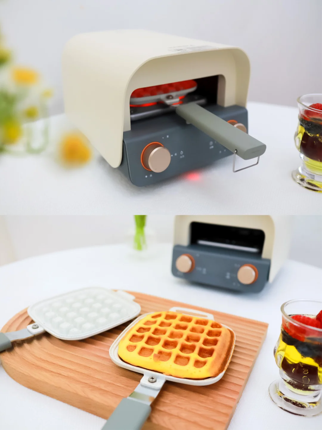 今天用的是康佳的早餐机,当初就是被它的颜值种草了,它有两种烤盘,一种是华夫饼的,一种是做三明治的。这种分离式的烤盘还挺新颖的,用起来也方便,拿取食物还不烫手,单独清洗烤盘就可以啦,完全不用等待机子冷却!简直就是懒人的福音啦~