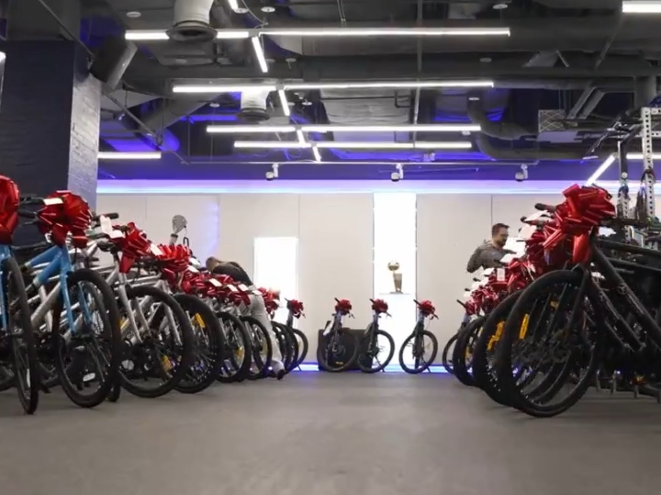 东契奇为湖人篮球运营团队每一位工作人员,所有球员和教练员都购置了一辆电动自行车作