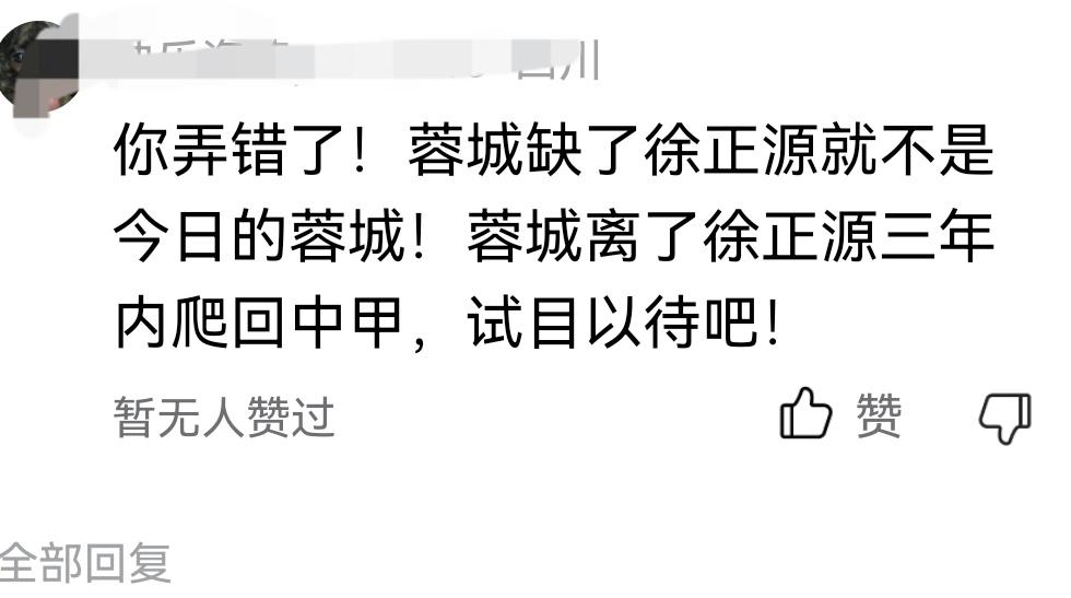 成都蓉城不是徐正源一个人能够支撑的!没有必要觉得徐正源不和蓉城续约天都塌了,世界上好的教练不止徐正源一个,说实话以成都蓉城的阵容和实力,本土教练带队成绩也不会太差,所以说有些球迷喜欢徐正源希望他留下的心情可以理解,但是过度就不提倡了!