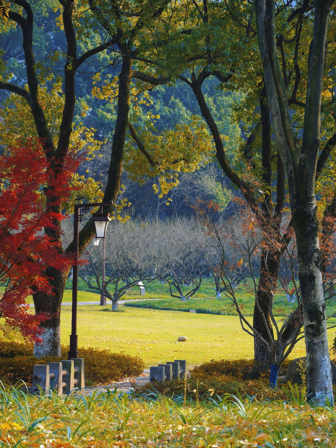 🌄谁能想到梅花季人挤人的公园,居然可以这么安静,远处的山景,近处的树和草坪,还有黑天鹅烫头鸭。3点光线柔和的时候特别出片,适合发呆、看书、简单野餐。
