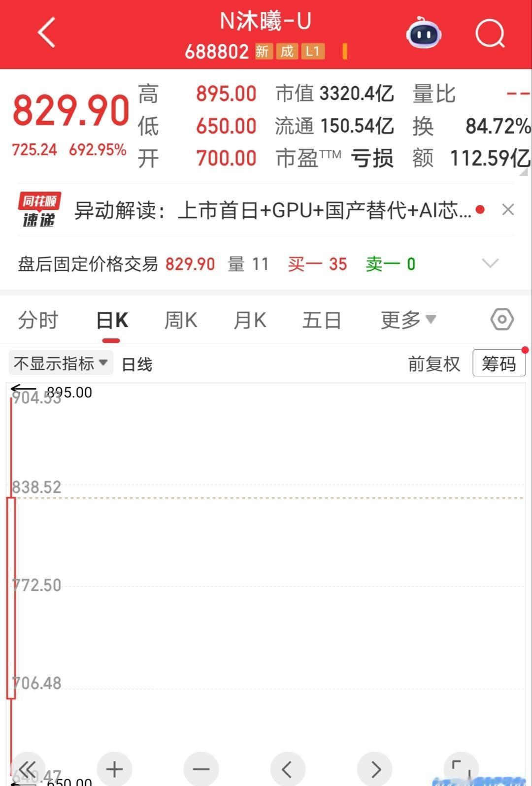 真的是一点也不把我们当外人了,前有摩尔,后有沐曦,这两个看着就像不同时出生的双胞胎: 1、年年亏损,而且亏损额都是几亿起步,每年要亏损掉一个中型民营企业; 2、高市值,低业绩。沐曦2022年营收42万,2025年营收12亿,看似坐火箭一样的速度增长。但是,这样的业绩放在主板,也显得非常差劲。 但是,有一点特别奇怪,它的热度远低于摩尔,莫非摩尔的出现只是为了降低沐曦的热度。 还有点特别惊讶:难道现在科创板上市的企业,没得三千亿以上的市值都不好意思上市了????会不会再来一个75亿的理财计划。 两大科技巨头的出现,也不知道是我们的幸事还是我们股民的悲哀。