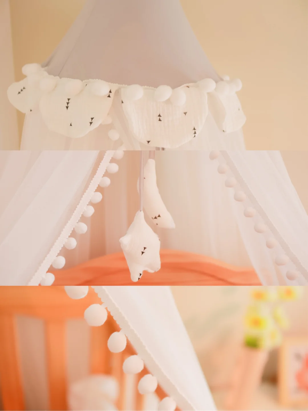 所以把之前的亚麻的窗幔换成了这种公主落地式的蚊帐