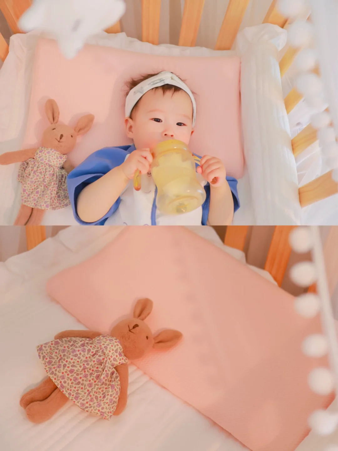 粉粉嫩嫩的,因为我们每次刚睡着那会特别爱出汗,硅胶的比较透气。有两个高度的,可以根据宝宝的月龄调整,还是很贴心的。我们小星星还是很喜欢这个哒~