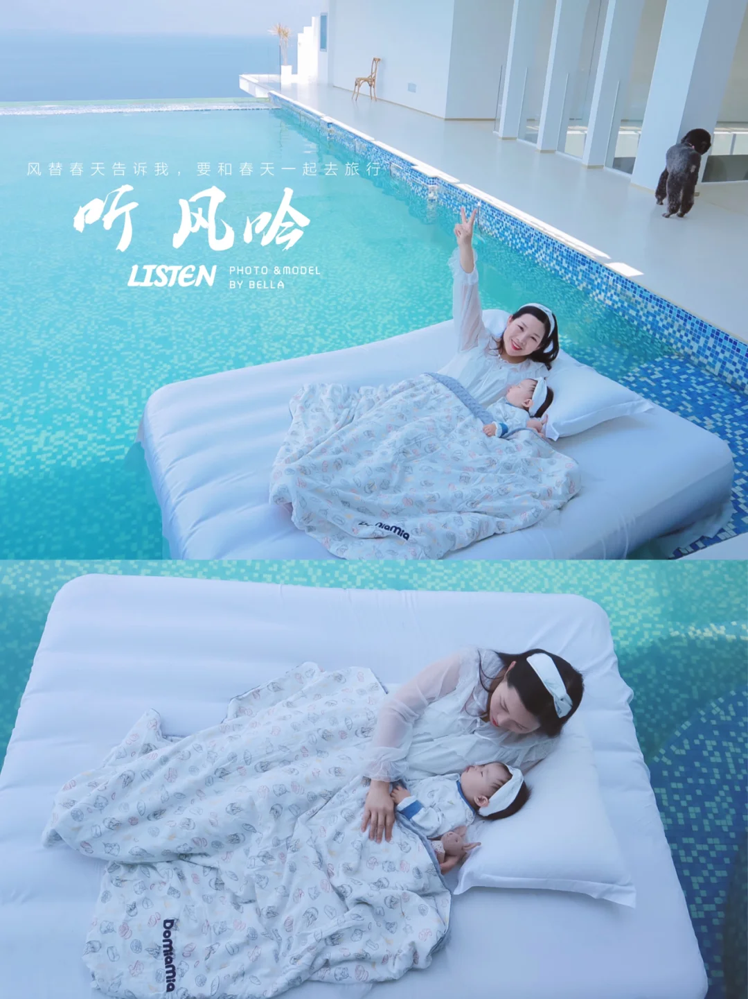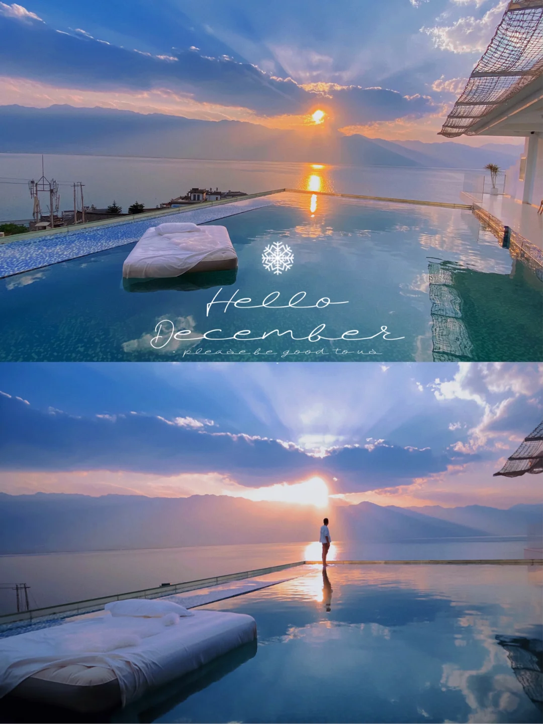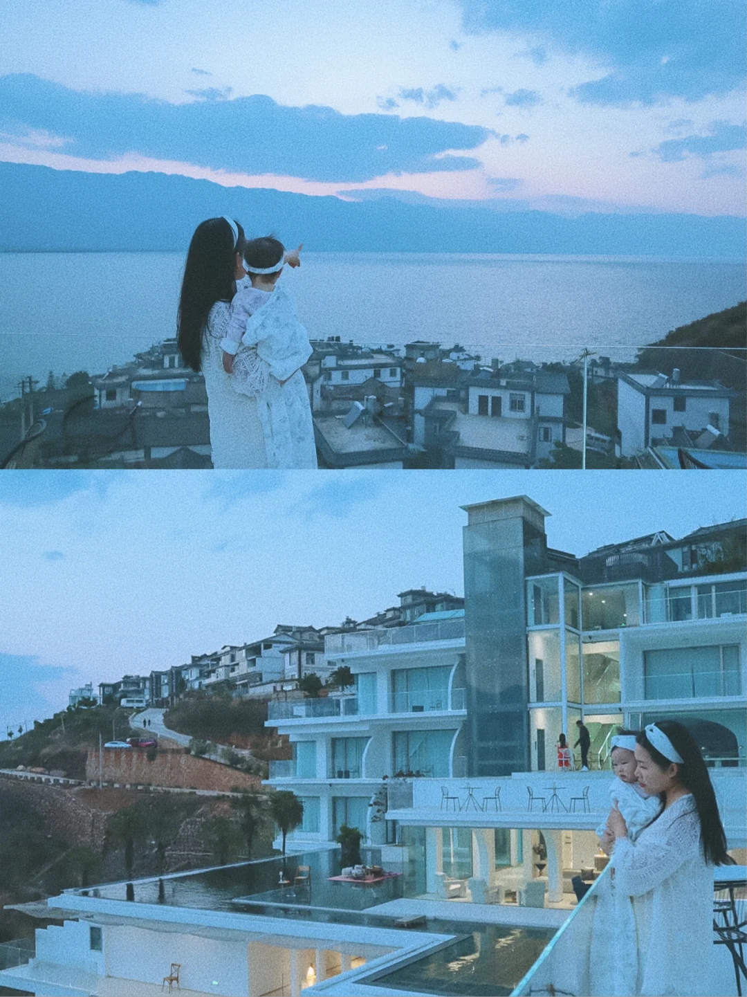 据说这里冬天还能看到雪山🏔️,感觉又要骗我再来一次大理了。这次带着小孩,所有时间都只能以她为准。才准备抱着出门嗨,没准转身就在悬浮床上睡着了。那就宅酒店拍照吧,真的是怎么拍都美
