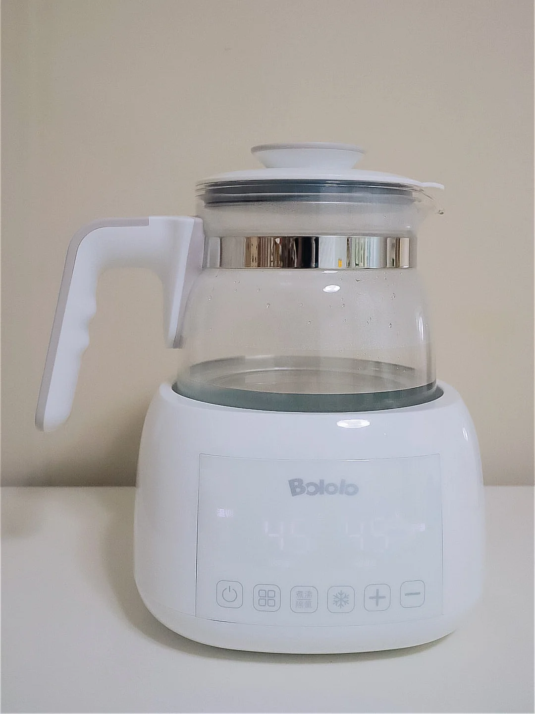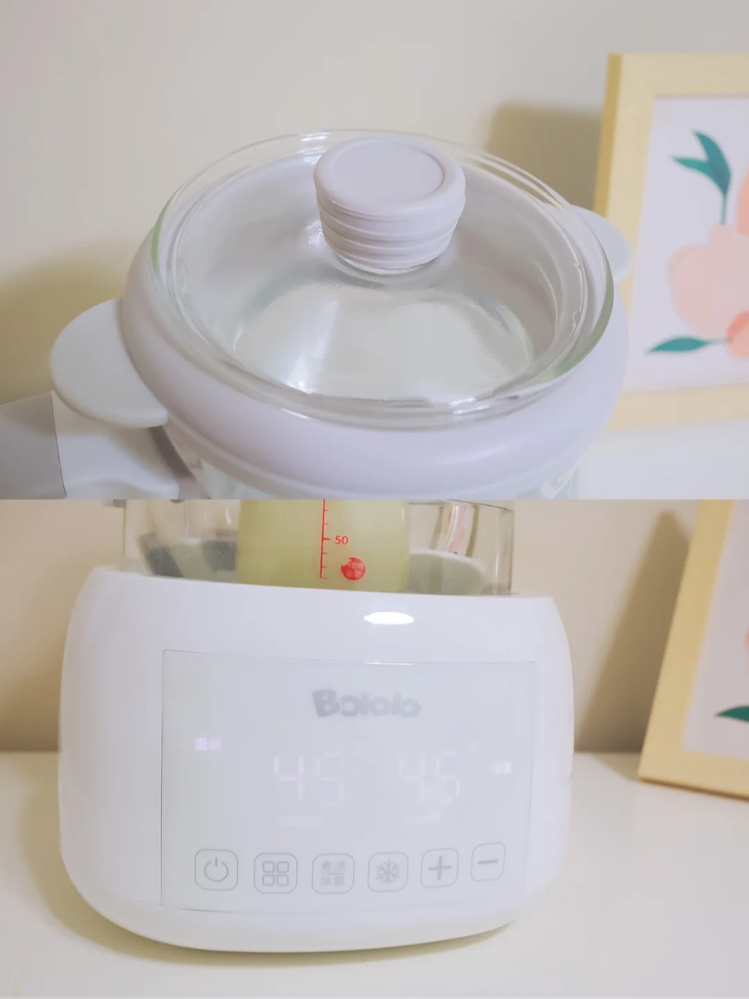 因为我白天上班了,小星星白天在家都是吃我之前吸出来放冰箱的冻奶。所以每次都需要热奶她喝。之前都是用开水直接热,后来听说用开水直接热奶温度太高了不好,奶的营养会流失,所以奶的温度一定要控制在45度左右。功能比较多,不仅是宝宝的暖奶器,还是我们的养生壶