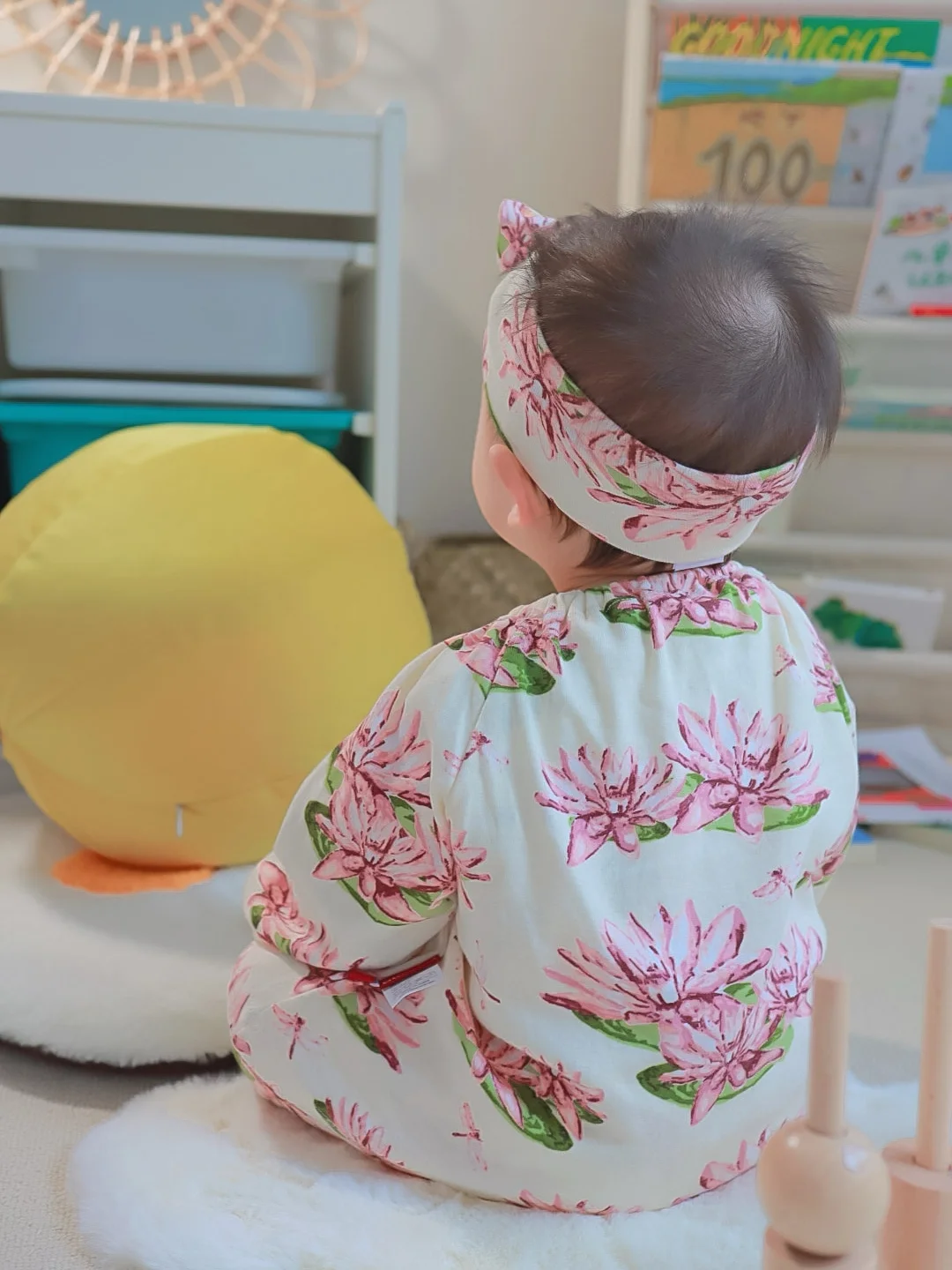 给她选了有机棉长袖的家居服,睡莲图案,我觉得敲美哒~