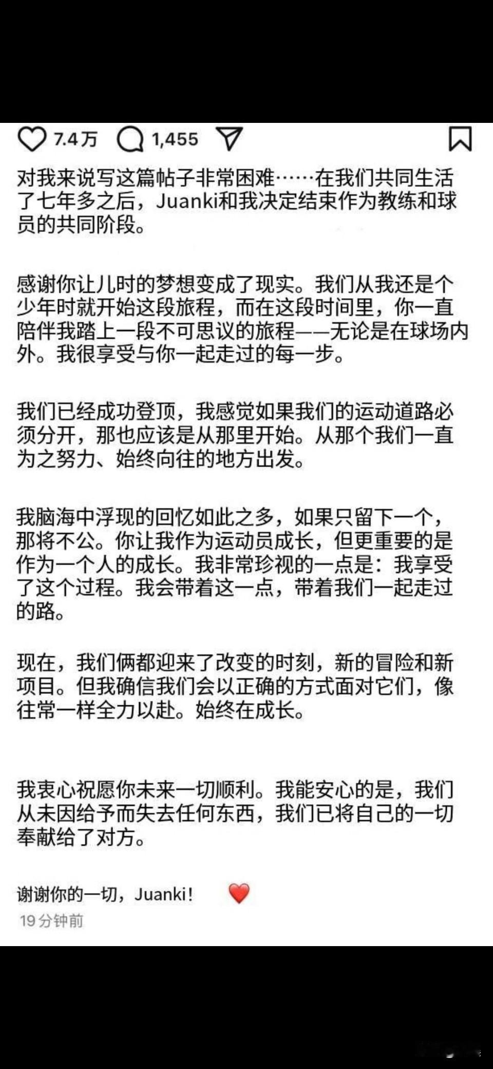 阿卡和费雷罗官宣分手💔,太突然了 之前 费雷罗 采访时才澄清外界传言他只带阿卡十年,十年只是个阶段,意思是十年后也会继续下去。可这才七年,2025年是阿卡现阶段成绩最好的一年,巅峰时期这种事太罕见了,可能发生了一些什么事?! 阿尔卡拉斯 费雷罗