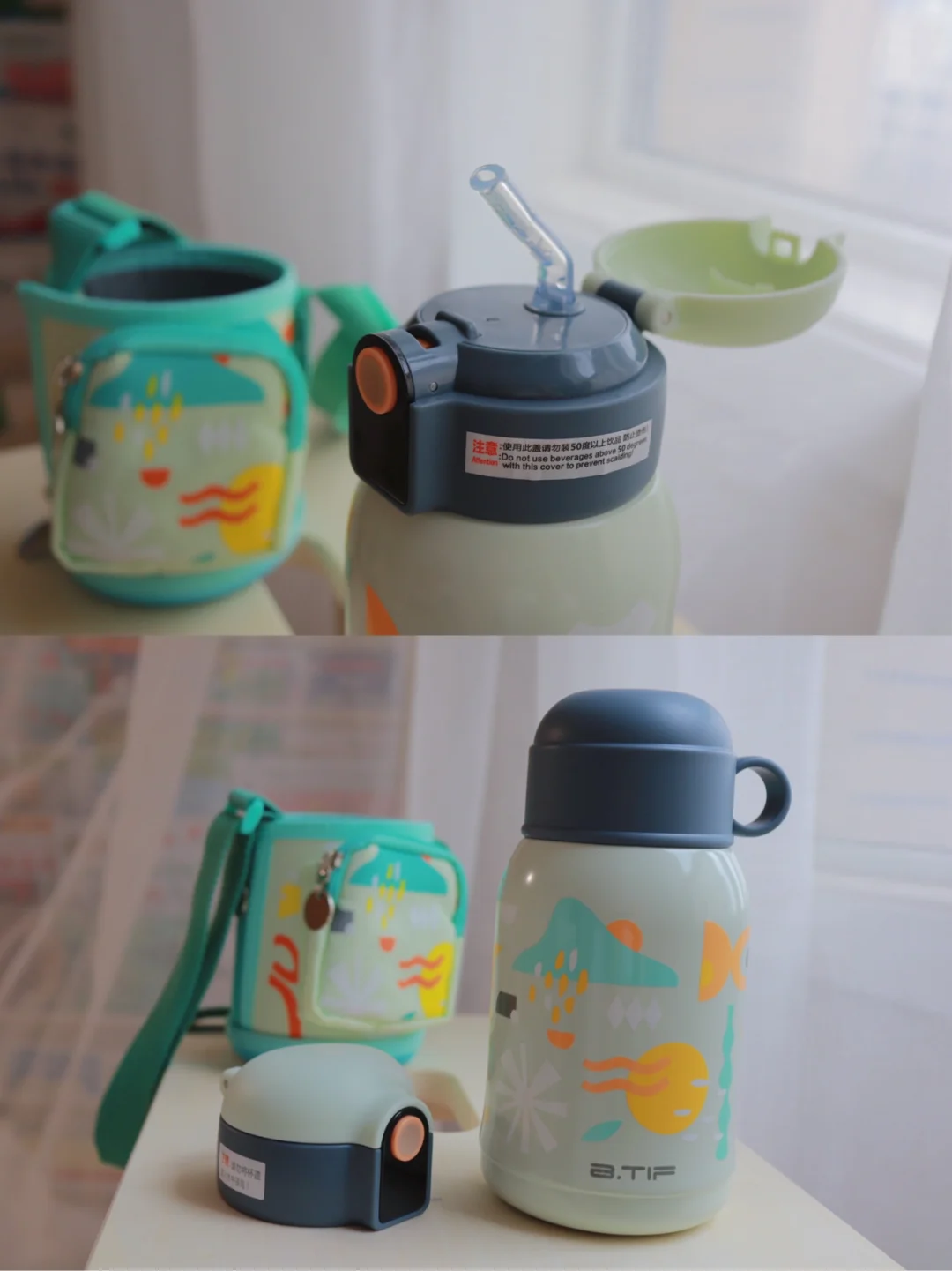 今天带的btif保温杯也是绿色的,这个是小清新一点的绿色,颜值🉑️,看到它就觉得春天来了!可以智能显温,触摸一下就能看到温度。保温效果也挺好的,基本上放一天水温不会有太大变化!还提供了两个杯盖,一个吸管的,还有一个是倒水式的那种,配了一个小杯子,随时倒取都很方便!