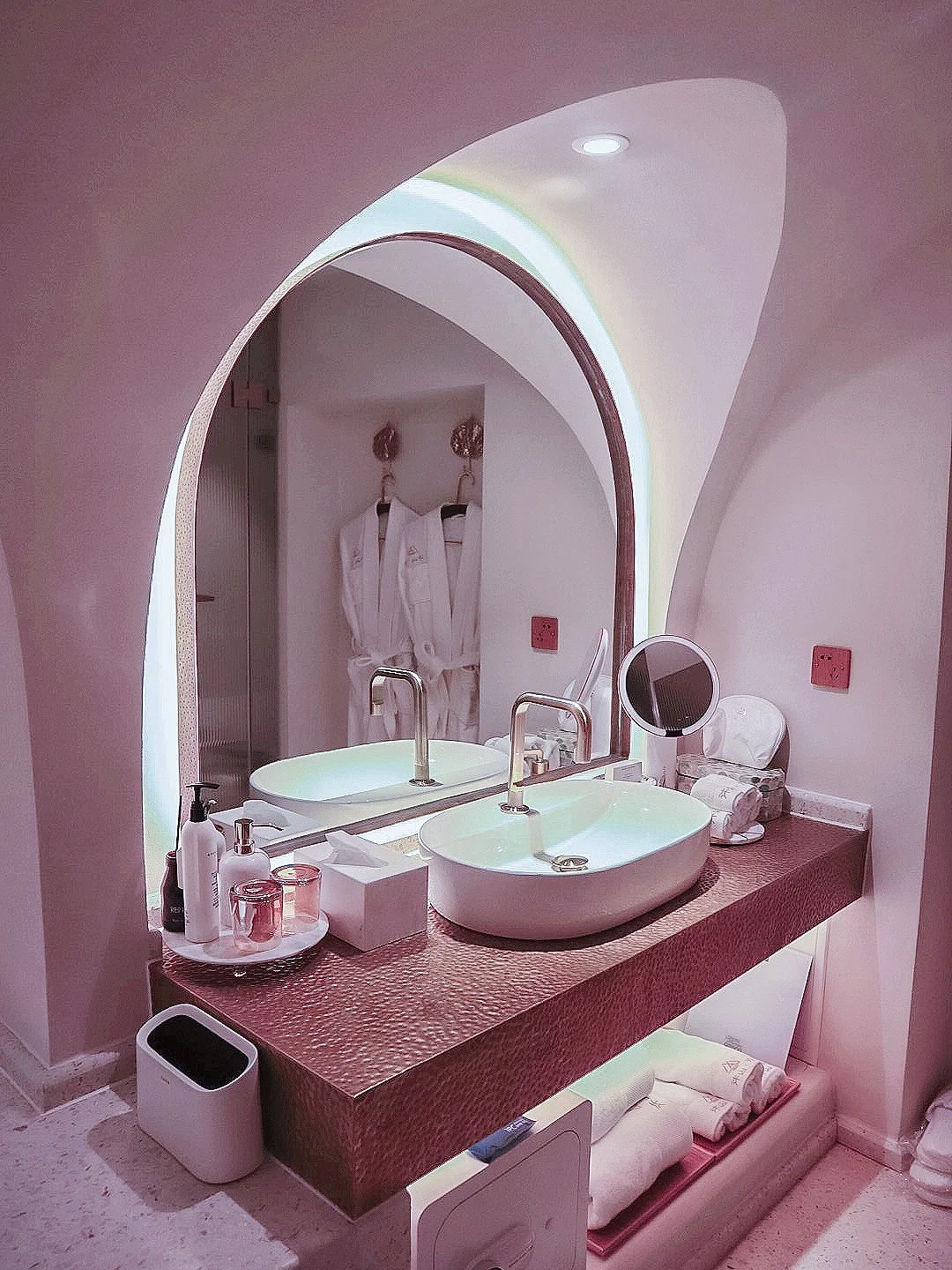 民宿位于大理古城洱海门附近,当天是我们包车环海的一天,热心的大姐帮我们送到民宿门口。到的时候已经是晚上8点多了,热心的管家已经早早在街边等待,帮忙拿行李和办理入住。我们入住的是二楼的“月长明”,推开门打开灯,拱形的落地窗外直接是整个“夏天”,天井处的绿植在夜晚在灯光的映射下实在太美了。躺在靠窗的长沙发上,仿佛拥有了一整片森林。房间有地暖,小冰箱(里面全是零食),复古烧水壶,智 能马桶,智 能垃圾桶,浴缸🛁,AMIRO化妆镜等。最特别的是还有专属的化妆包,里面有面膜和蒸汽眼罩,管家提醒化妆包是可以带走的哦!