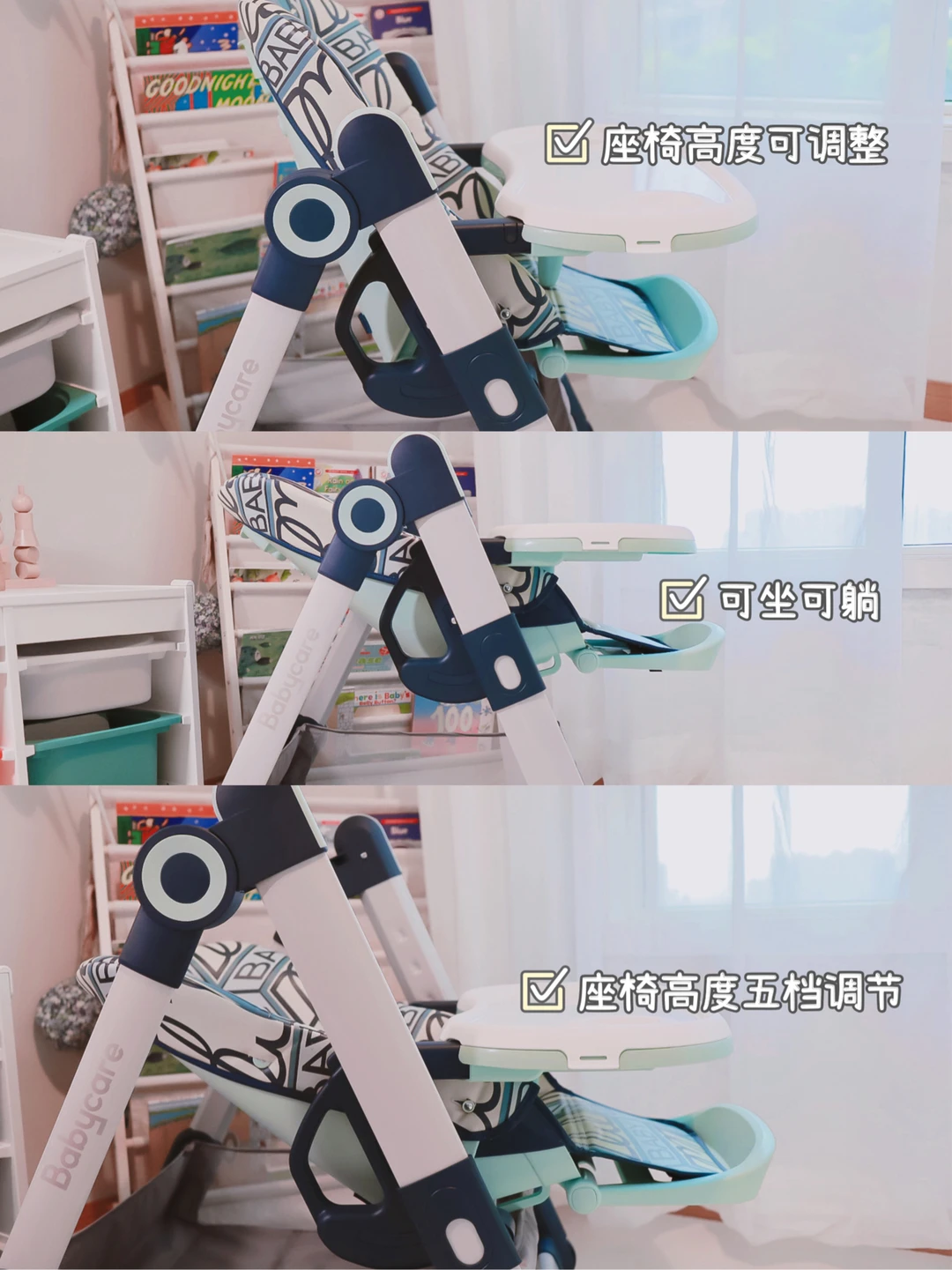 种草颜值很久入手的,车车比较有分量,比较稳固不容易侧翻,座椅的材质是防水的,擦洗比较方便,5️⃣档角度可坐可躺,小月龄宝贝还可以躺着睡觉,置物篮的空间也很大,可以放不少东西的。然后别看它体积大,实际上它收纳特别方便,一键就可以折叠收纳起来了,一点都不占位置。我们家小星星还是挺爱坐这个的,看得出来我们是一岁的宝宝了吗?餐椅看着真的很宽😄