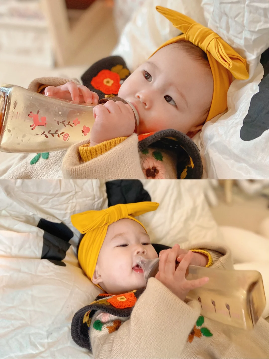 小星星最近也开始变得更粘人了,每天只有喝奶的时候最乖。新买的这个M&M弧形奶瓶也算是解放了我的双手,因为它弧形角度的设计,不用一直仰着头喝奶。只要给她一个舒适的位置靠着,她就能自己拿着喝奶啦😄