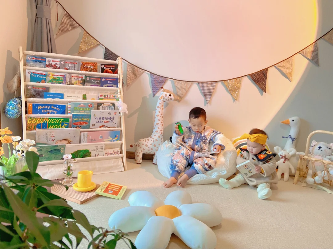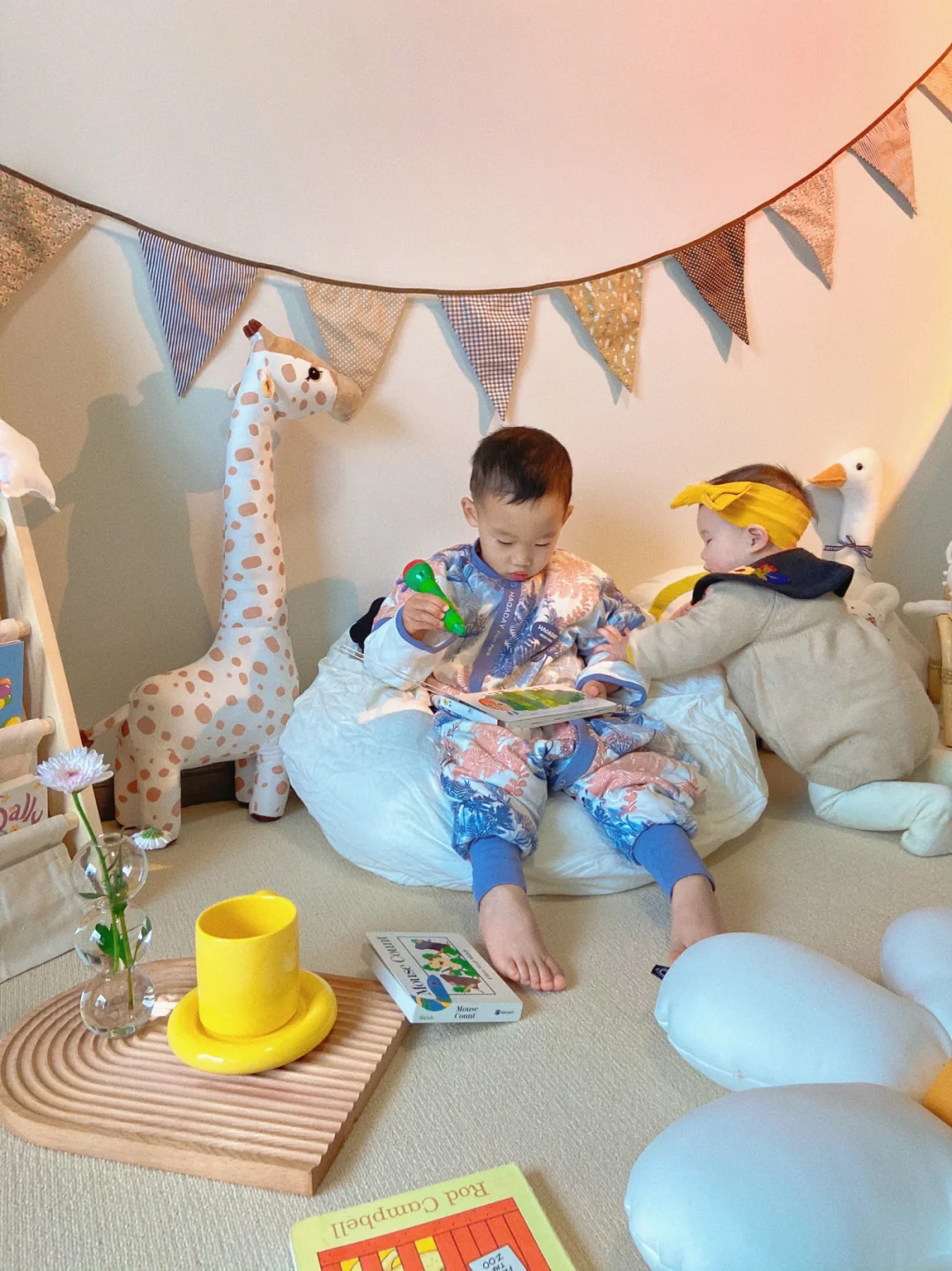🥰眼瞅着我们家的小星星慢慢长大,和哥哥的互动也愈发频繁,就想为他们打造一个舒适玩耍的小空间,看看书,玩玩小游戏,兄妹打打闹闹
