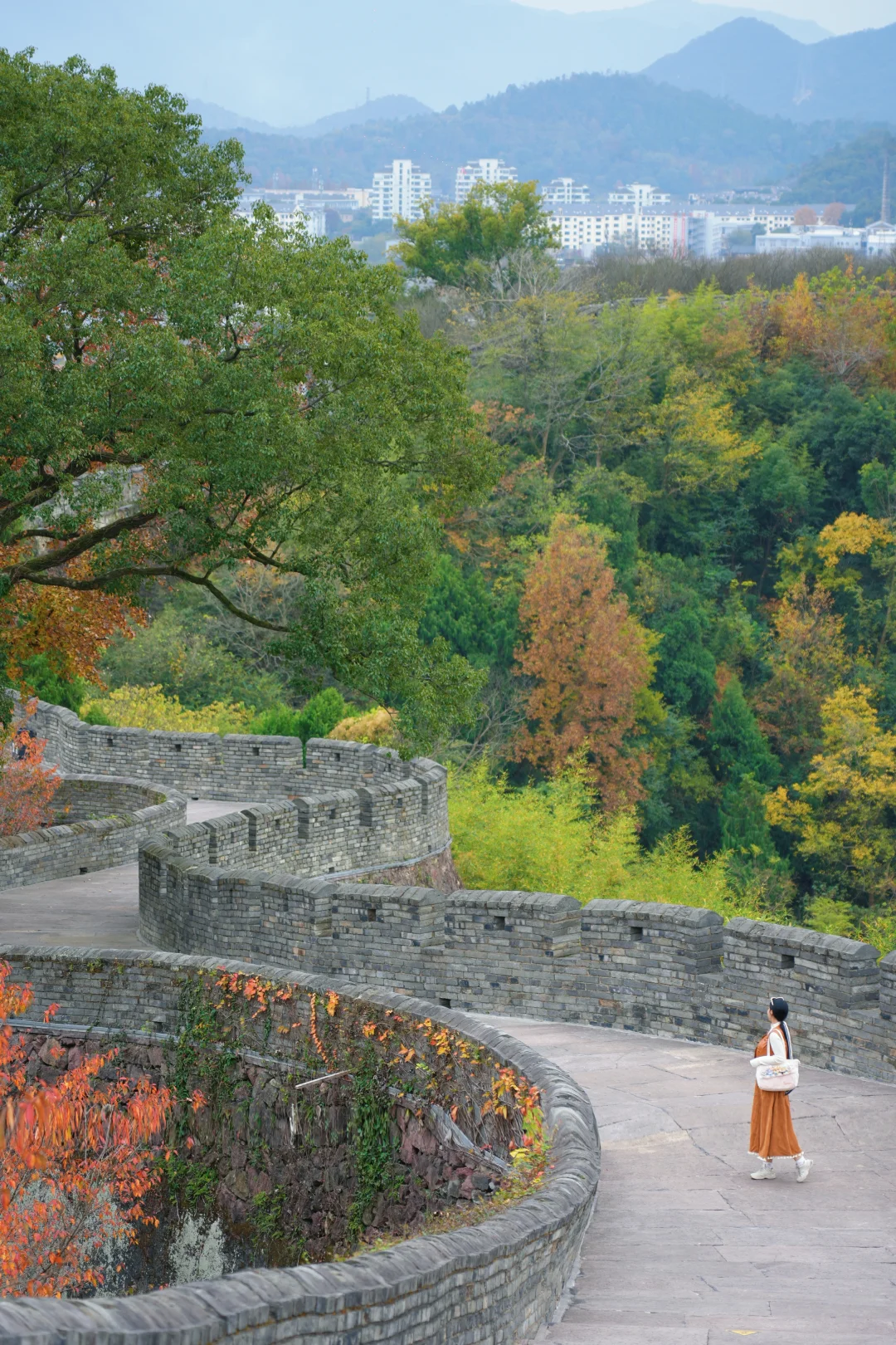 198级好汉坡登顶,俯瞰东湖与古城全景,城墙被绿荫环绕,漫步其中超惬意。
