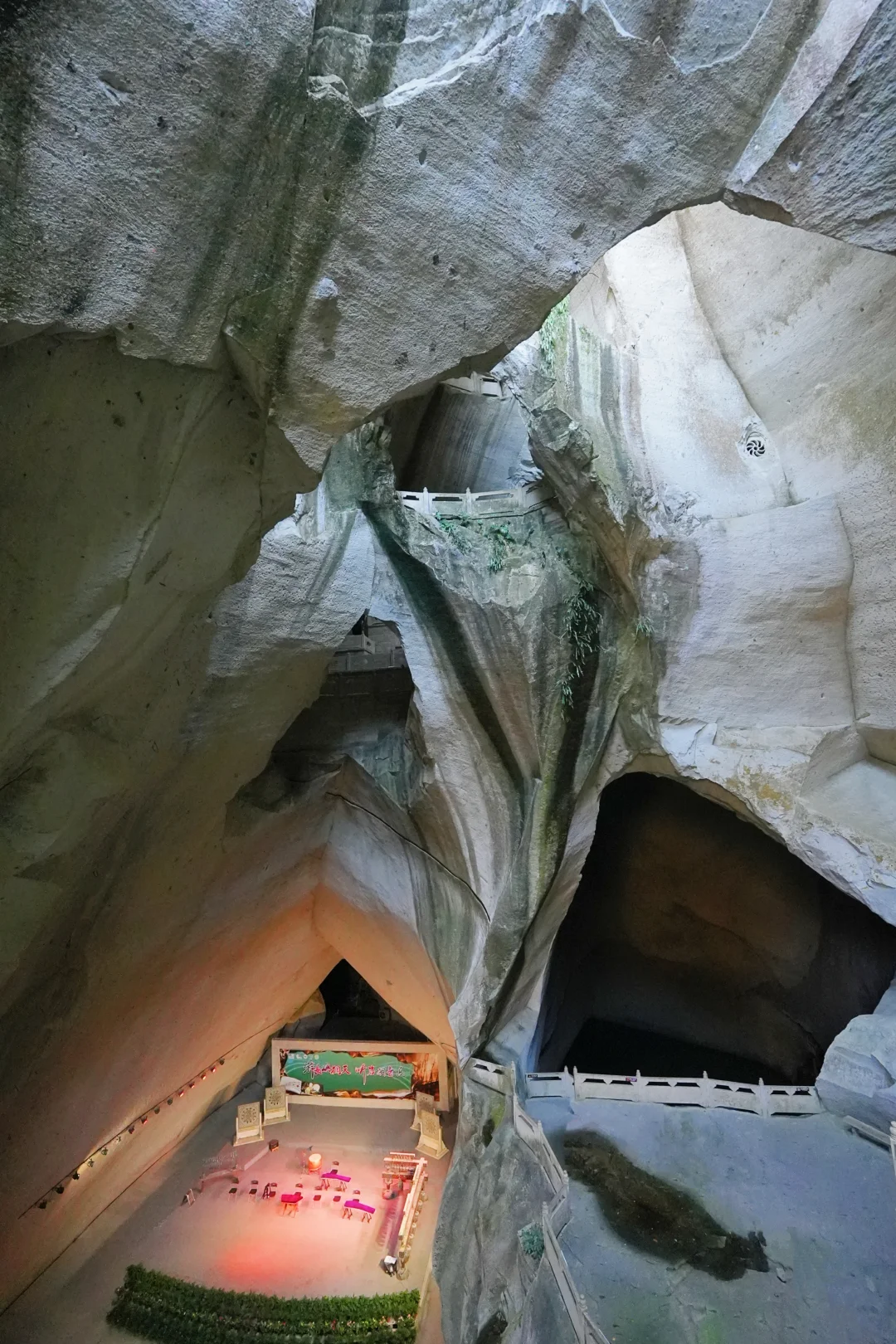 感受人工开凿的岩洞奇观,灯光下宛如秘境。