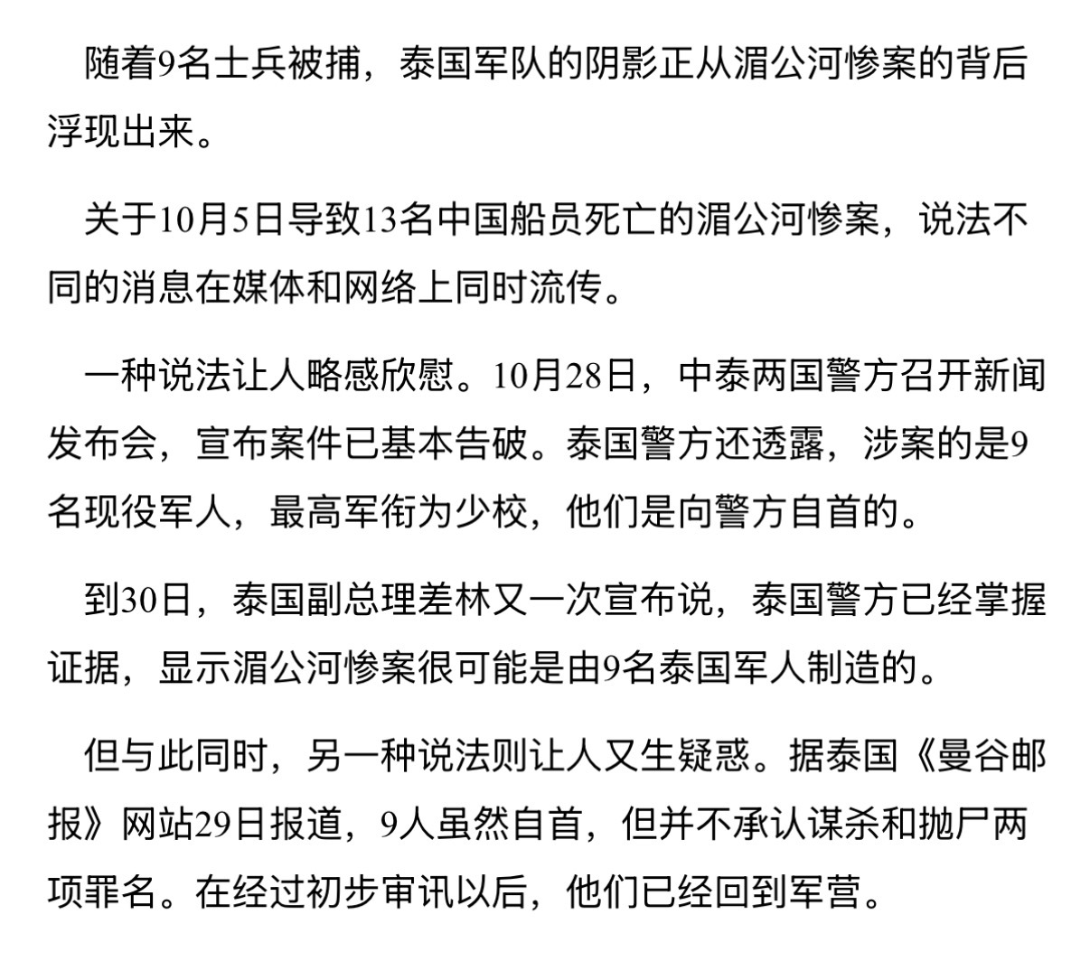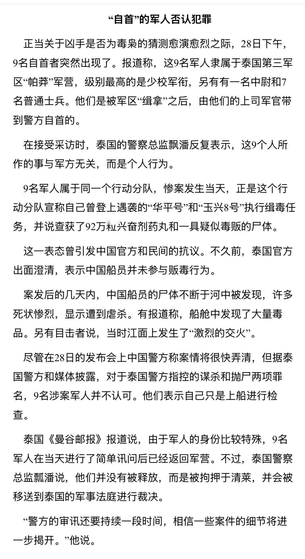 泰柬冲突热点观点 14年过去了,有的人忘了,有的人当年还小没听说,所以这里再翻翻旧账,发一下当年湄公河惨案的新闻,以防有人不知道泰国军队干过什么事。当年这起13人惨死异乡的恶性事件震惊了全国,即便中方极大力度施压将部分嫌犯捉拿归案,但其中涉嫌与金三角毒枭勾结犯案的9名泰国陆军官兵在拒绝认罪后迅速被送回军营,最终不了了之,至今逍遥法外。中泰关系在我国的东南亚战略中固然有其地位,近年中泰军事合作也在加深,当年涉嫌杀害遇难者的那支泰军部队甚至还获得了北方工业交付的新型步战车。但是中国和柬埔寨的关系同样也是重要的,中柬两军关系近年也取得了新进展。中国对东南亚各国采取的是平衡的外交关系,而且不论是柬埔寨还是泰国都绝对没有如一些人所愿的那样“认中国做大哥”。泰国方面在近年的经济活动中与中国社会打交道较多,深谙影响中国舆论并博取同情的重要性,至少不希望中方出现有利于柬埔寨的倾向。因此泰国抓住中国人对电诈赌博等黑产的痛点,花了很大力气进行宣传战。泰国的网络和宣传相对发达一些,近年不论是对我们有利还是不利的东西都能快速传播,日本和台湾的投入给泰国的相关链条积攒了经验。相比之下,柬埔寨在这方面的动作就显得跟不上网络时代了。其实泰国人为了泰国利益这么做倒也无可厚非,但我们又不是泰国人,作为中国人到底要不要照单全收吃下这套舆论战文宣就另说了。至少在盛赞泰军“勇武”之前,要知道他们自己究竟是怎样的一帮人。柬埔寨当然不干净,但泰国现在在中国互联网上都快被捧成圣人国家了,这也不符合事实。明明是狗咬狗,非要从中选一条,说这条是在为中国的利益“替天行道”,这种思维未免显得有大病,甚至有点贱。PS:20世纪10年代,暹罗开始盛行排华思想,泰皇甚至亲自以多种语言发文乃至著书,称“中国人是东方的犹太人”,宣扬中国人对泰国构成极大危害,对中国人进行仇视打压成为泰国的官方政策。二战爆发后,泰国对华人的种族隔离政策升级,一日之内多个地区的数千华侨被驱逐。亲日的泰国总理颁布多条新法规,关闭中文报纸和学校、剥夺华侨产业。当时,泰国的野心已经夸张到了扬言“云贵川皆是泰族故土”的地步。垂涎于“大东亚共荣圈”承诺的领土扩张利益,泰国更进一步选择成为日本帝国的盟友,不过常凯申依然公开宣称不会将泰国视为敌人。可惜“大泰族主义”上头的泰军并不领情,不仅对盟军宣战,而且向缅甸发起进攻一路打到中国边境。泰军主动挑衅,与中国远征军交战并造成中方损失,还一度越境侵略中国云南,并虚假宣布占领西双版纳。入侵的泰军后来遭受惨重损失,可谓是替日军火中取栗。时至今日,泰国境内仍然保有日军纪念碑、泰-日友谊纪念碑等战争遗物。二战结束后,泰国吐出侵占的领土便并未被清算,战后的泰国又以各种名义进行了至少两轮国家层面的大规模排华,甚至不论发动政变上台还是被政变下台的总理都保持排华立场。朝鲜战争中,泰国又作为第一个响应美国号召的亚洲国家加入“联合国军”,派出一名亲王率领王后卫队和海军舰艇、空军飞机出征朝鲜。即使是现在,泰国军队也坚持继续向韩国派驻停战委员会联络官和联合国军仪仗兵,维持象征性军事存在。后来,泰国军队又追随美军打到了越南,东南亚版北约组织——SEATO的总部就设立在泰国首都曼谷。对了,如今在柬泰冲突中的泰国参战序列里,就有当年曾与中国人民志愿军在朝鲜激战的那支部队哦。当然,中泰关系如今总归是要向前看的,但不可能只考虑中泰关系,曾经有着阴沉过往的中柬关系也要继续发展。那么,对东南亚地区搞平衡外交的首要因素当然是确保真的“平衡”,这其中就包括了不被冲突任何一方的宣传牵着鼻子走,否则大国舆论被甚至不是陆上接壤邻国的小国玩弄于手心,岂不丢人。