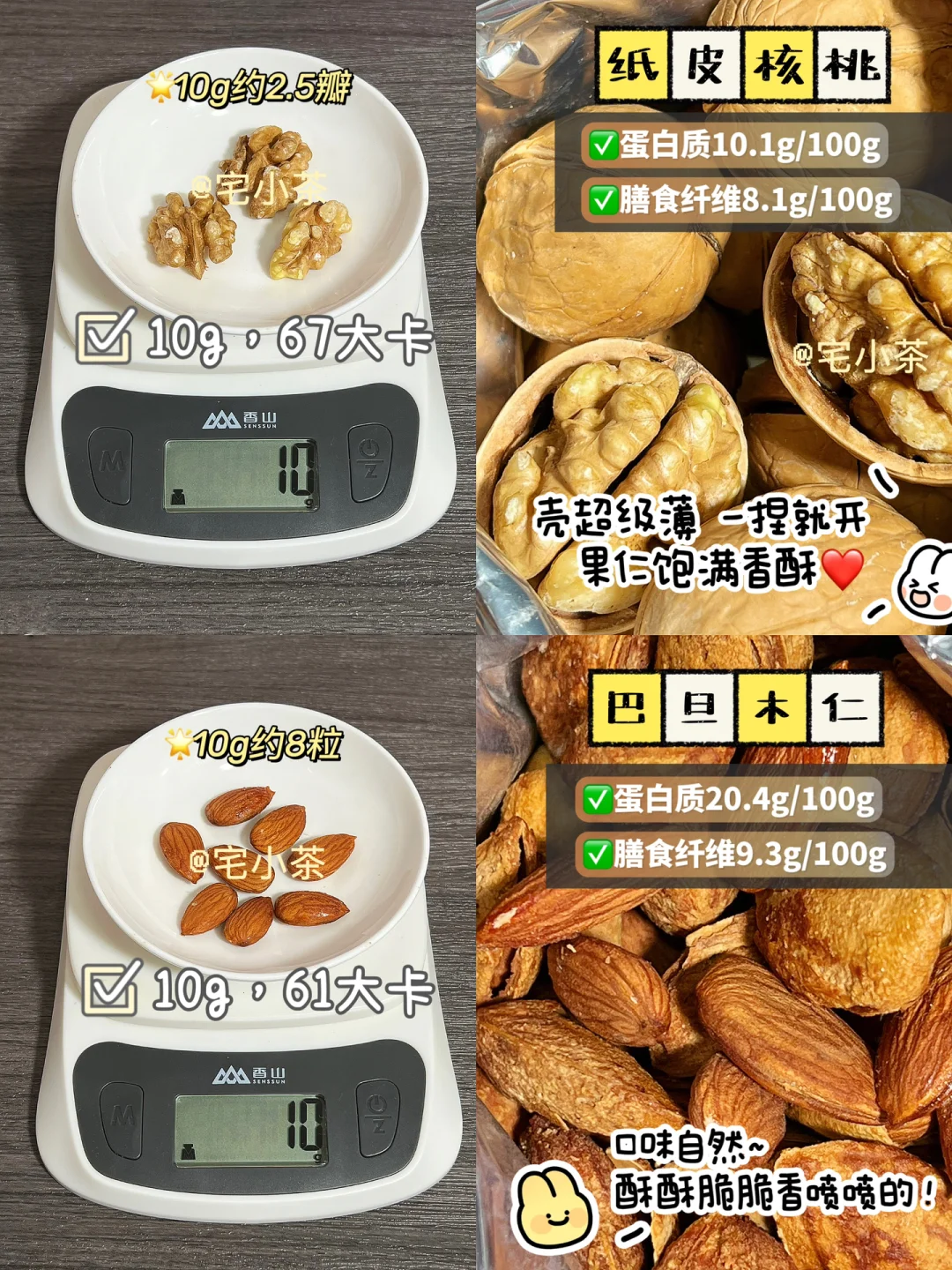 纸皮核桃和巴旦木的壳都超级薄,一捏就开,果仁饱满香酥;