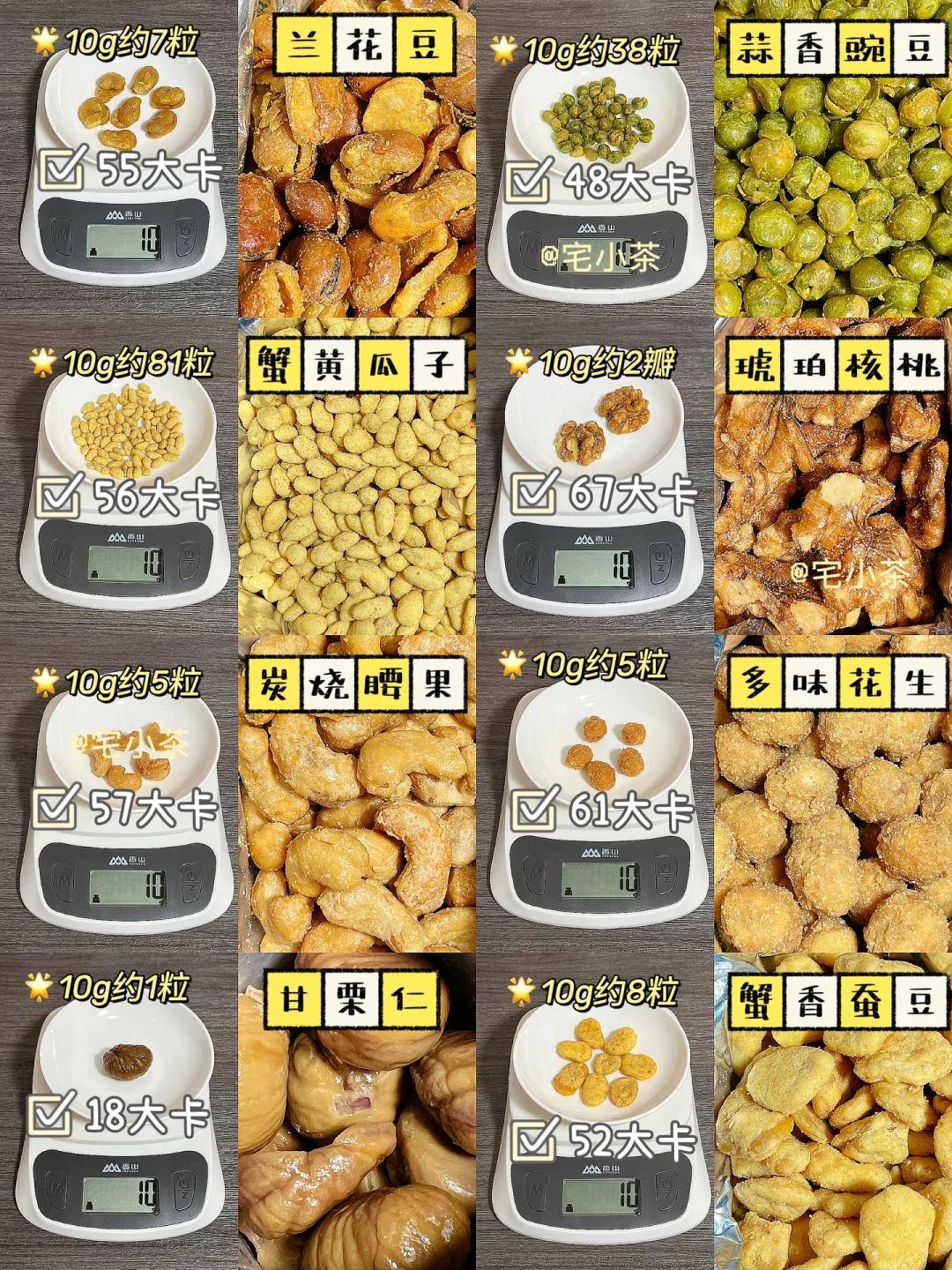 ✔️为了方便对比查看,本期测评重量控制在10g,热量和成分都标注在图片上了,可以直接查看!