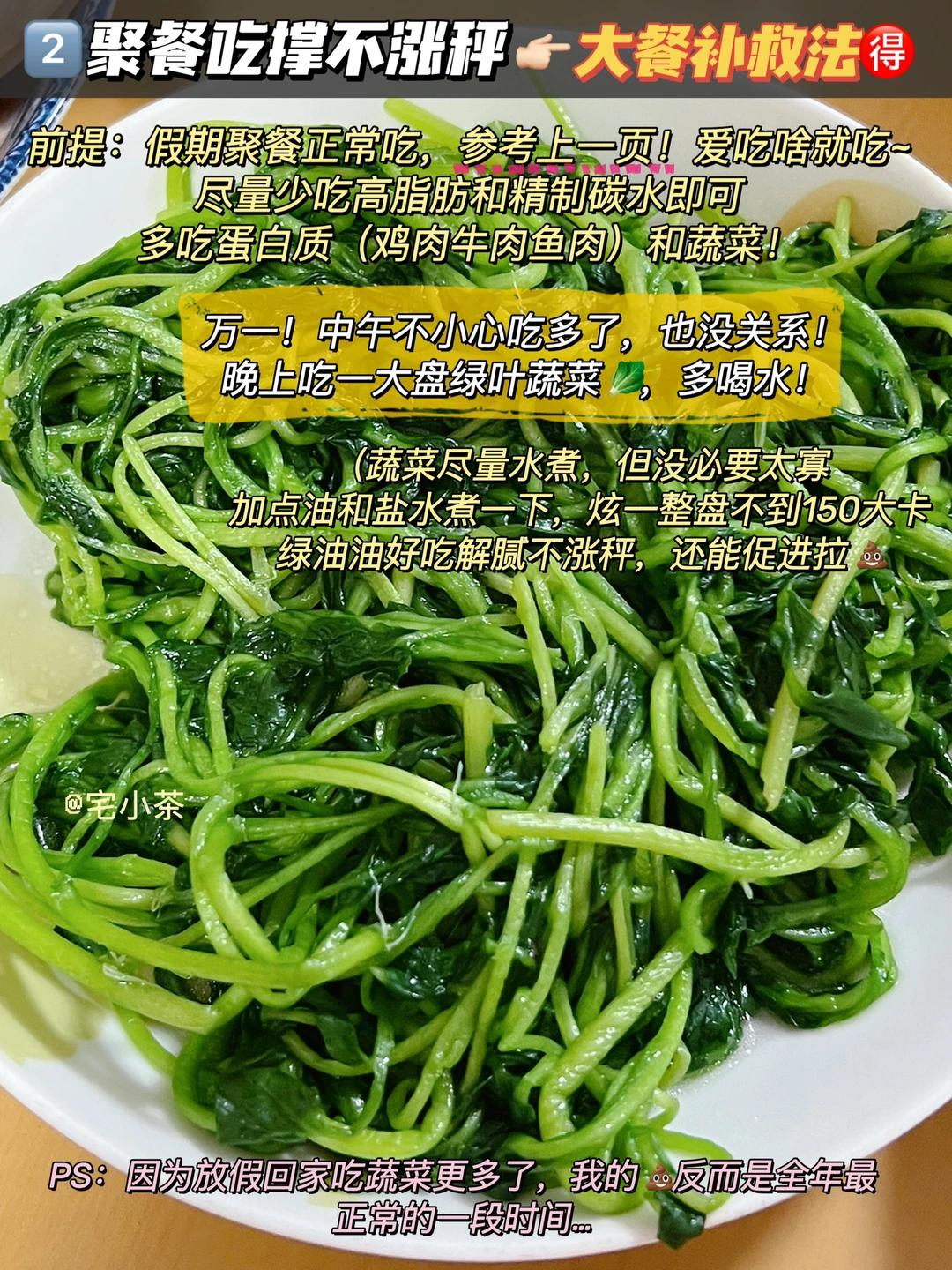 8️⃣大餐补救要点总结:①少摄入热量②多吃菜促进肠道//ru动③多喝水促进代谢,第二天体重就降回去了。