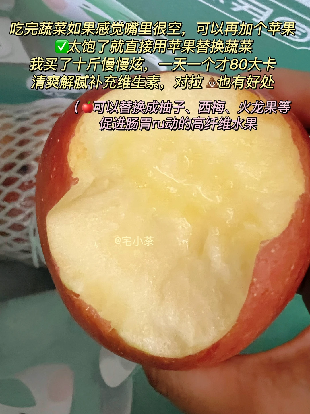 4️⃣吃完蔬菜如果感觉嘴里很空,可以再加个苹果,太饱了用苹果替换蔬菜就行。