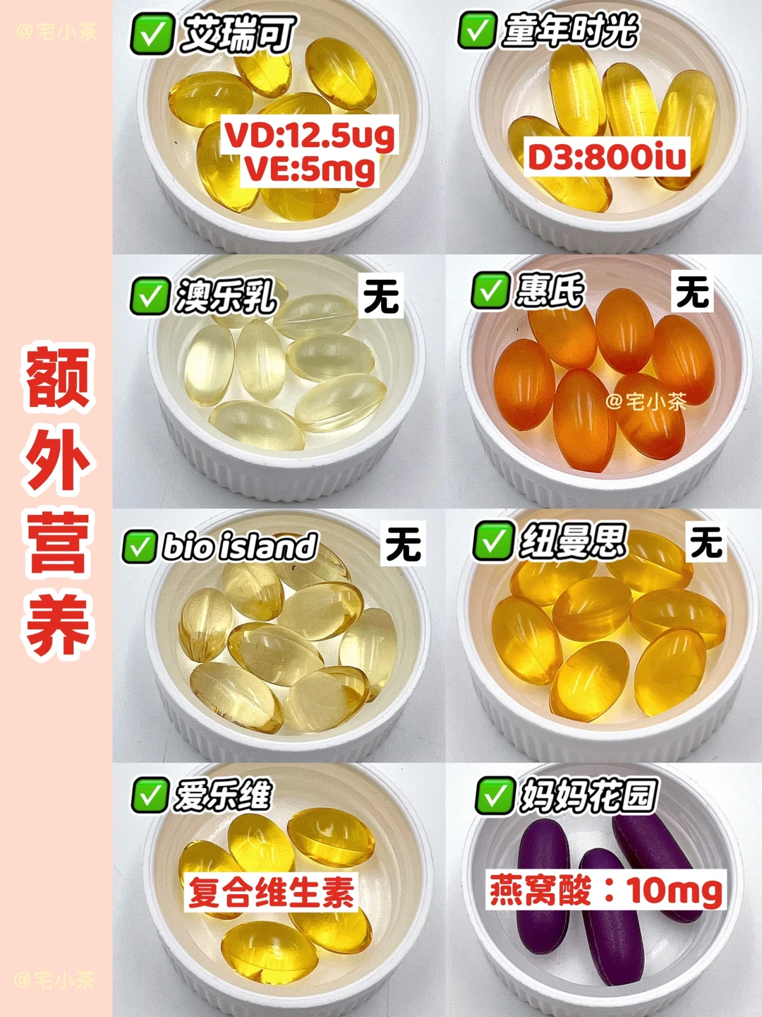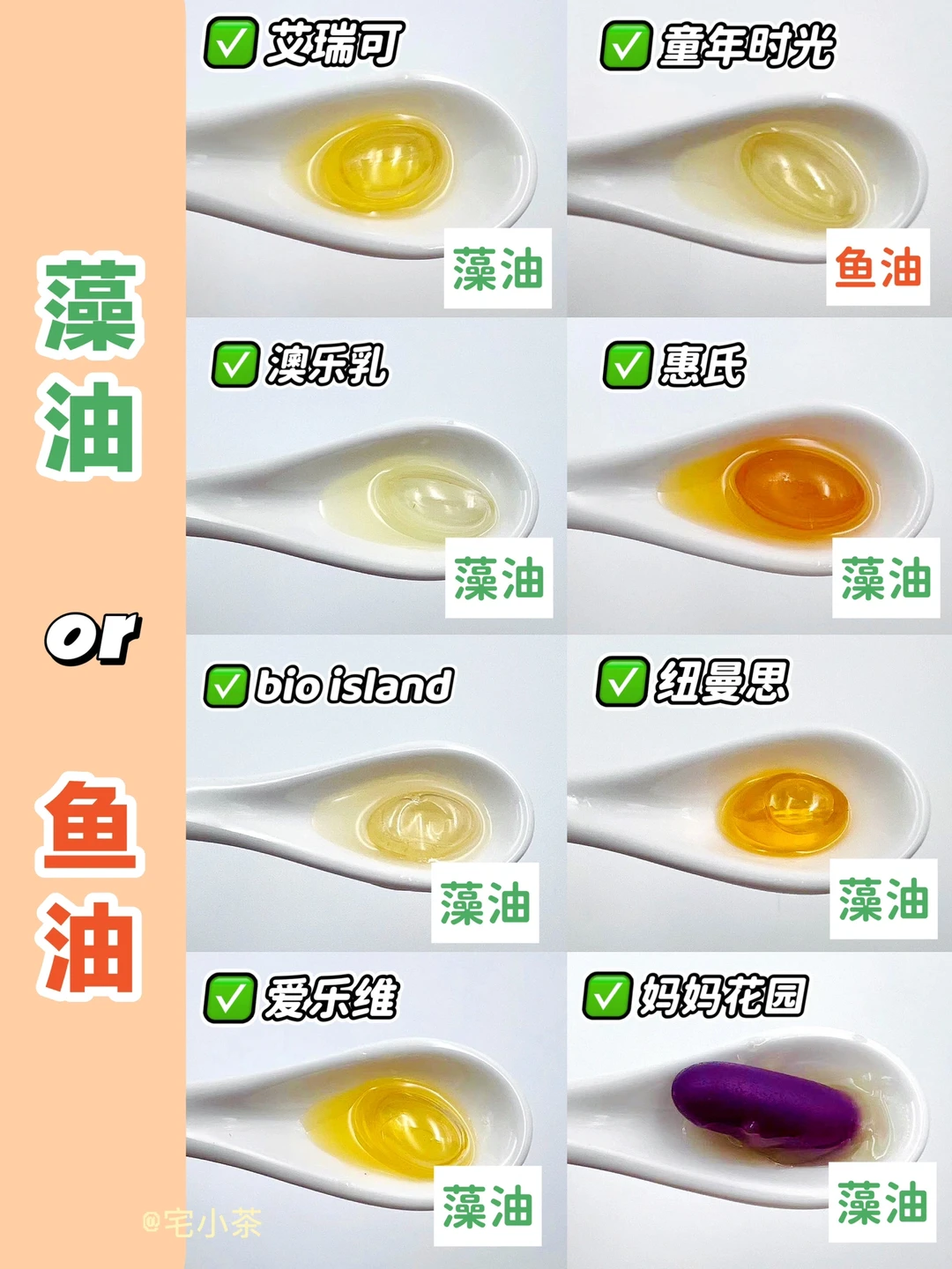 🔸成分:除童年时光是鱼油外,其它DHA品牌均为藻油