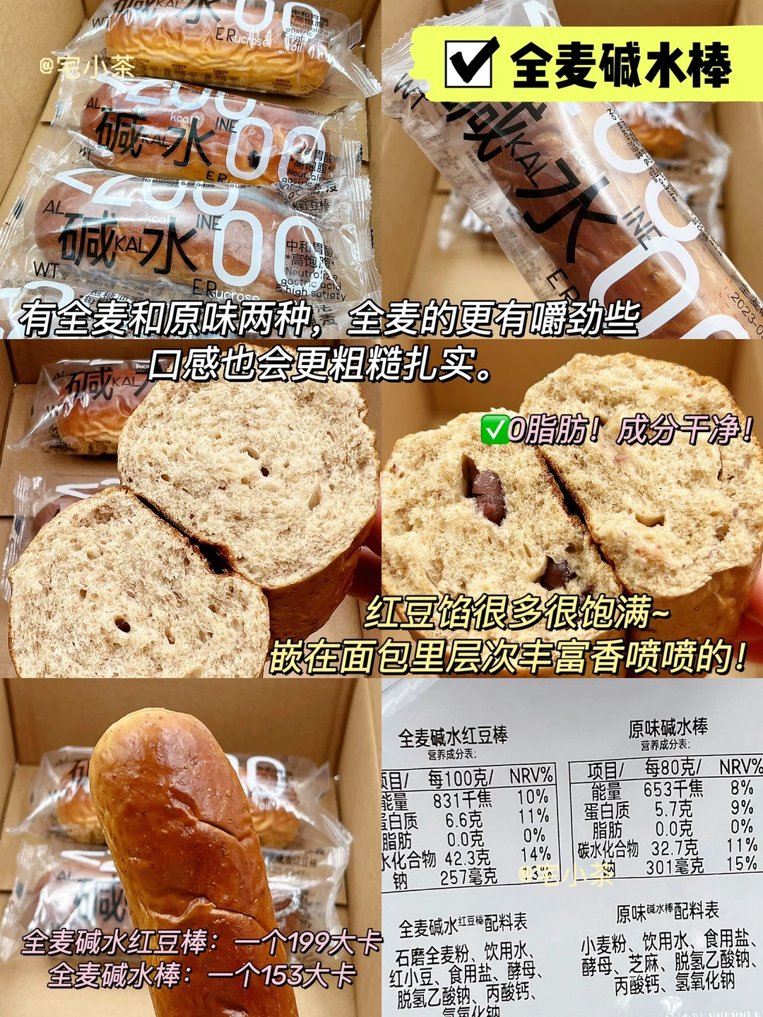 全麦碱水红豆棒:一个199大卡/100g