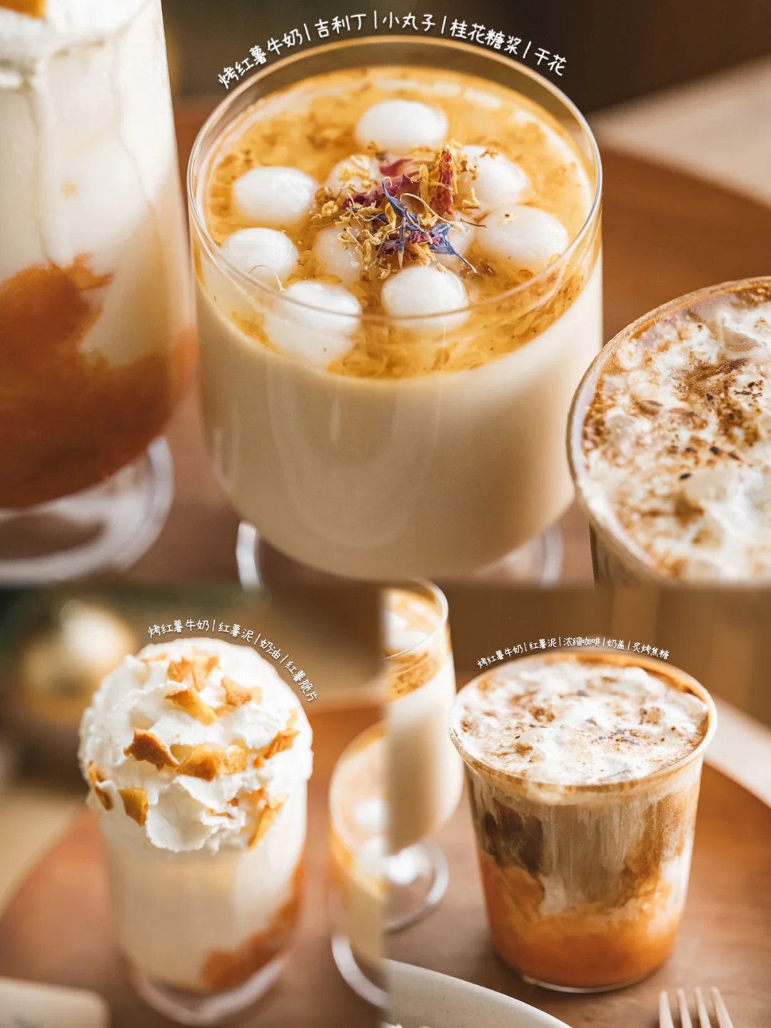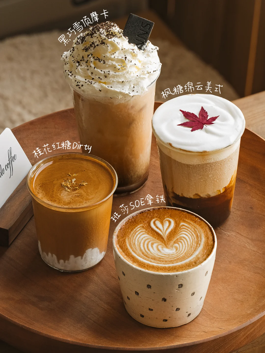 Day 1 乌梅流沙|开心Dirty 迷你拿铁|提拉米苏 Day 2 红薯焦糖拿铁|红薯雪顶牛奶 桂花红薯奶冻|可可香蕉红薯 Day 3 烤棉花糖摩卡|苹果肉桂卡布 雪顶莓莓拿铁|桂花蜂蜜拿铁 Day 4 黑巧雪顶摩卡|桂花红糖Dirty 枫糖绵云美式|班莎SOE拿铁 -