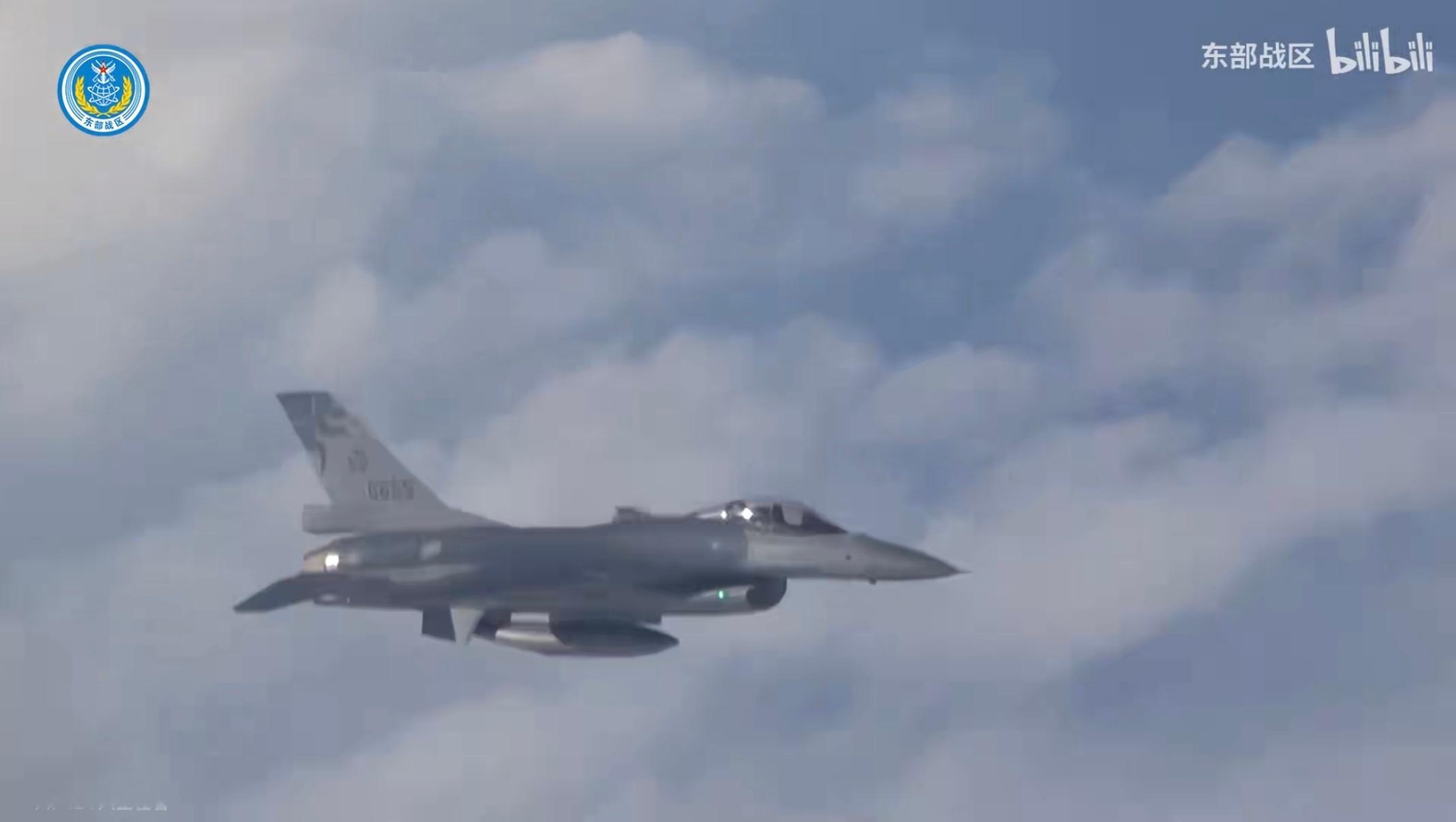 与台军F-16V双机编队近距离接触的画面是我军J-16D电子战飞机拍摄的,画面角落能见到独有的吊舱天线。这架台军战机没有带导弹也没有带光学吊舱,只带了一个副油箱,但附近可能有其他带了武器的飞机。台军飞机在相对安全的远距离伴飞,双方虽然少不了在无线电里互相“问候”,但并没有更激烈的格斗动作等,台军发布的吊舱跟踪画面大部分就是这样的情形下拍到的。正义使命2025演习热点现场