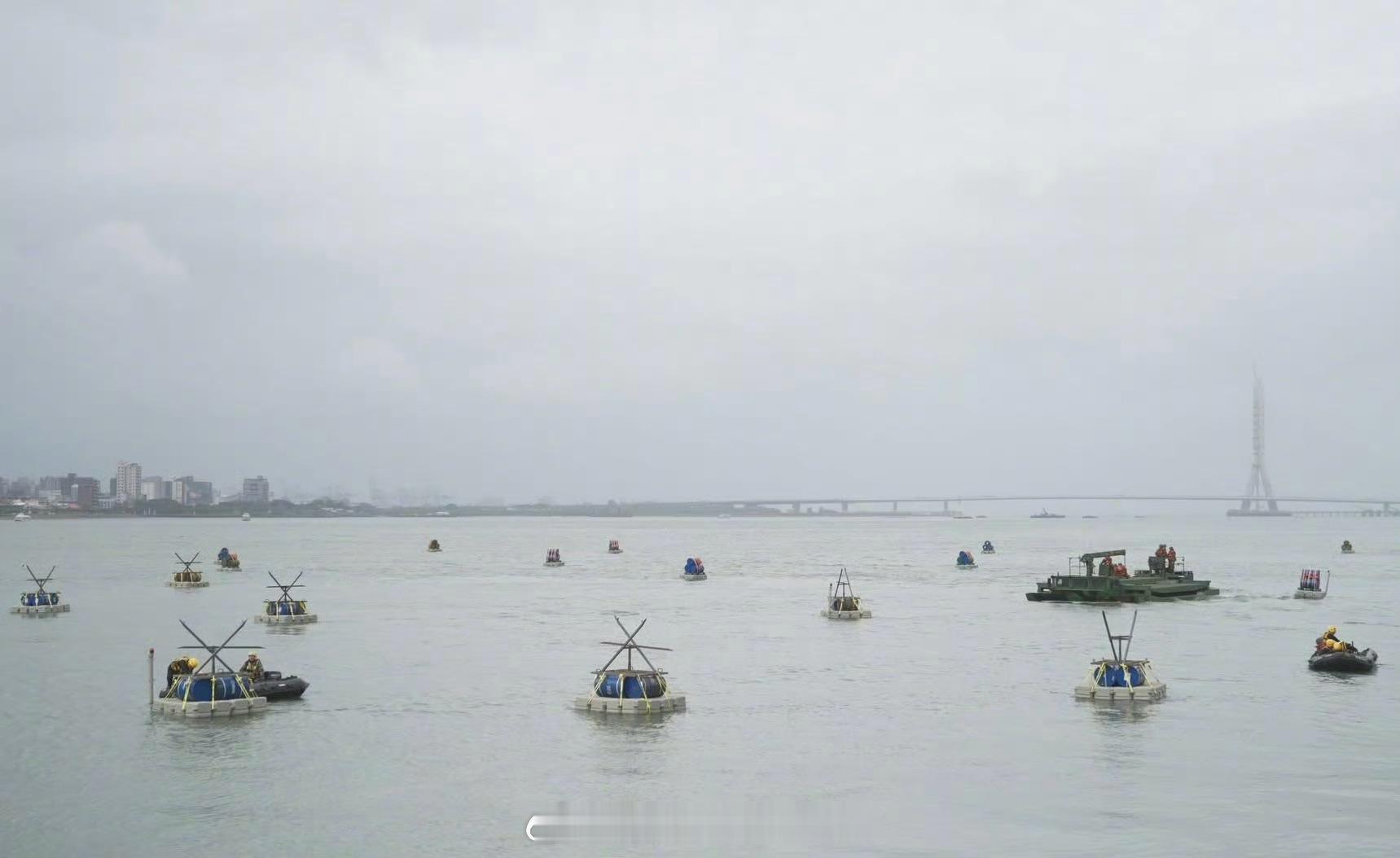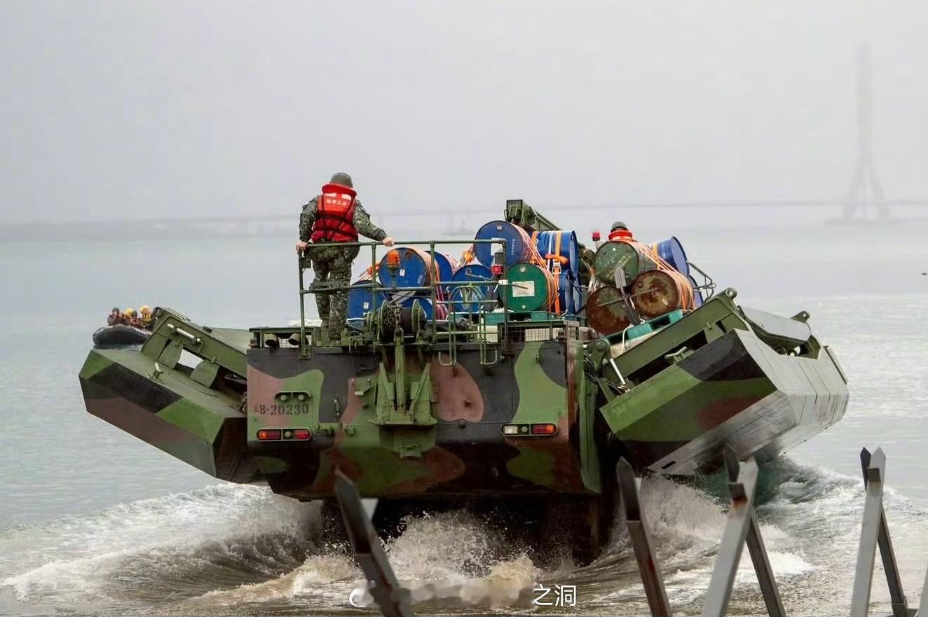 在淡水河口布设漂浮炸药桶的台军舟桥车正义使命2025演习